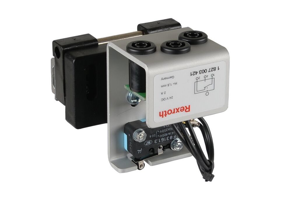Interrupteur de fin de course électrique avec levier à galet. Commande par une came de commutation. 1 contact inverseur. Système de fixation pour plaque à gorges