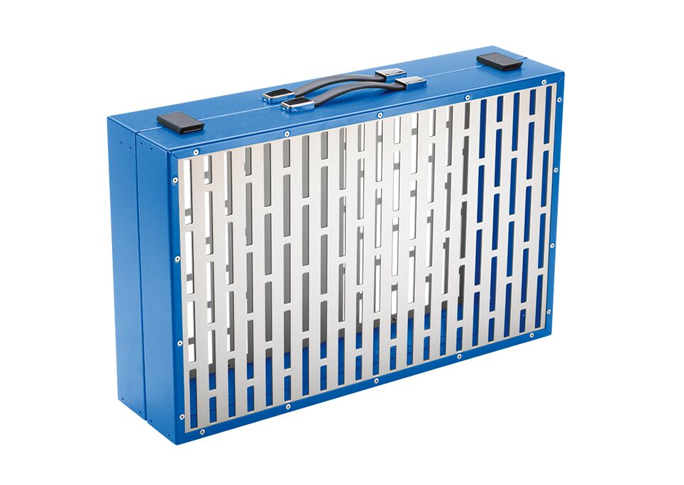 Coffret métallique à gorges. Station de travail, adaptée à la pneumatique et à l’automatisation industrielle. Pour 1-2 participants, plaque à gorges pour le système de fixation rapide Snap-In. Pour l’installation des exercices et le rangement des composants