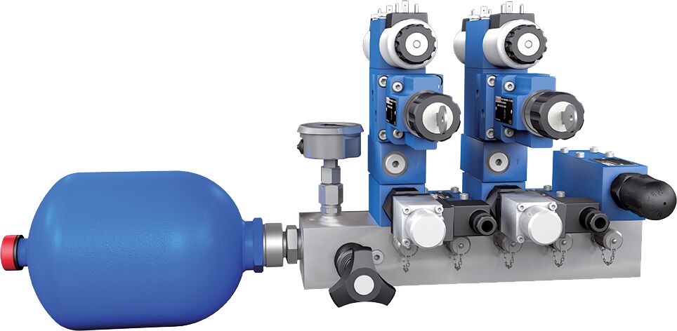 Calibre 06, 3 empilages en hauteur. Commandes hydrauliques compactes pour 3 empilages en hauteur du calibre 6, avec trou de montage pour un limiteur de pression et un manomètre. Élément pour commandes prêtes à être raccordées par empilage en hauteur. Limiteur de pression du type DBD dans la conduite de pression P. Possibilité de raccordement d’un manomètre dans la conduite de pression P. Raccords de mesure dans les conduites de consommateur