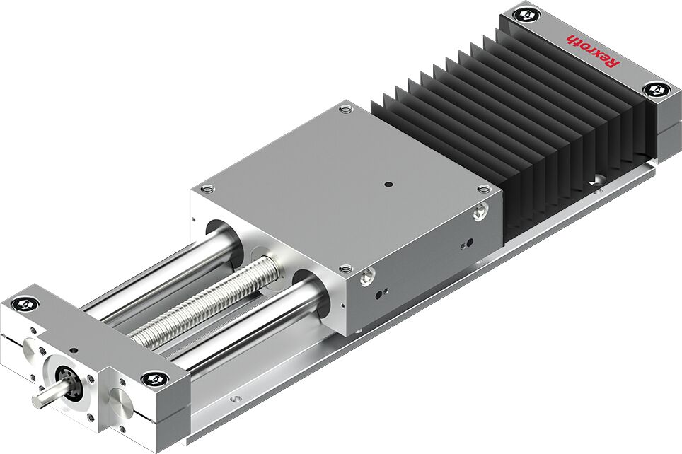 Chariots linéaires, ouverts, avec vis à billes SOK, taille 230. Modèle ouvert pour installation de soutien. Grandes longueurs possibles grâce au support d’arbres. Forces d’avance élevées. Vis à billes de précision Rexroth en exécution roulée de classe de tolérance T7 selon DIN 69051 avec écrou cylindrique sans jeu. Vitesse de déplacement élevée grâce à de grands pas de vis à billes. Entretien économique grâce à la lubrification centralisée (lubrification à la graisse) des deux côtés du système de guidage. Avec protection à soufflets. Fixation simple du moteur par centrage et taraudage. Gamme complète d’accessoires disponible