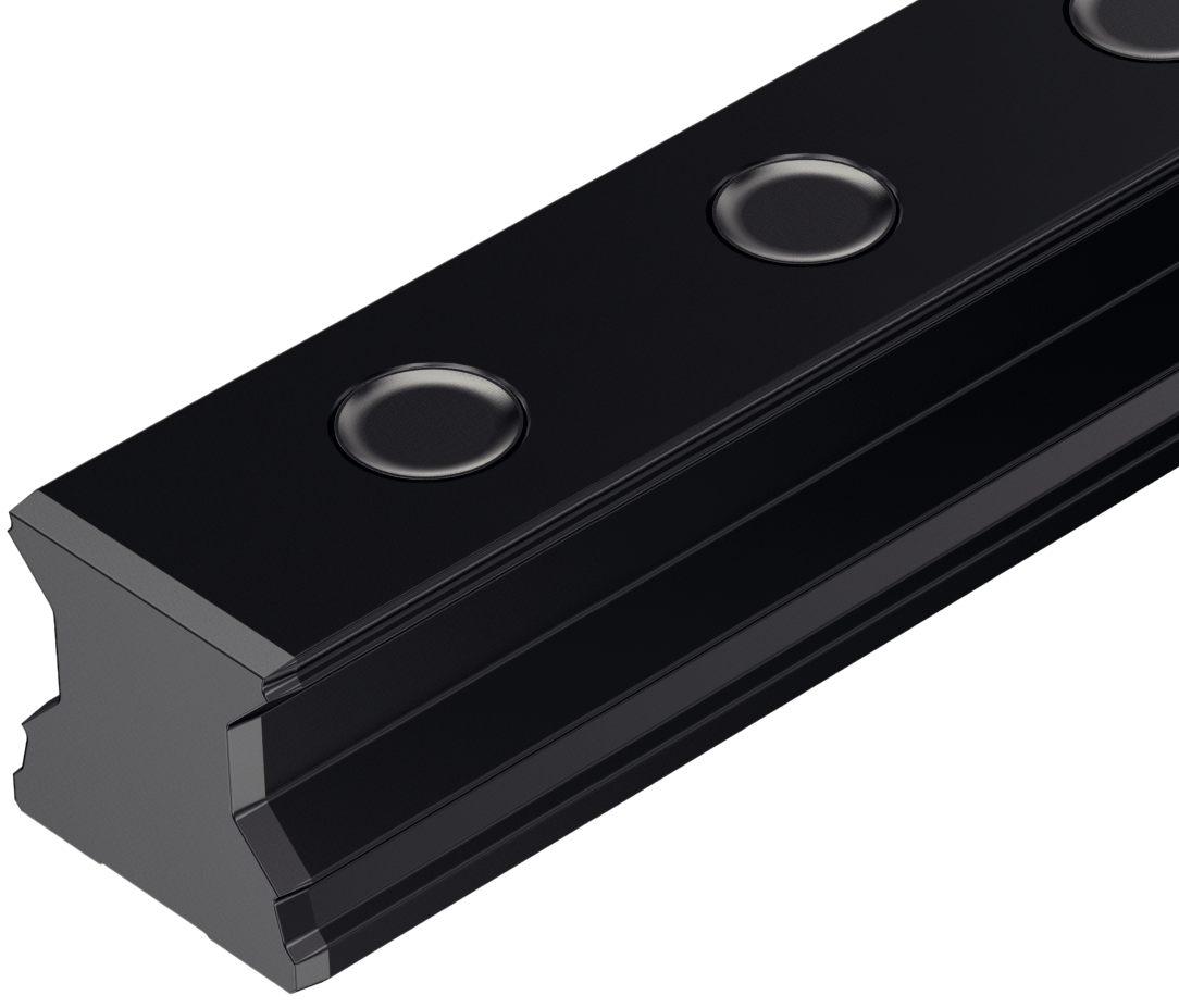 Rail de guidage à rouleaux, SNS, taille 65, revêtement Resist CRII, précision élevée. Le rail de guidage à rouleaux est très précis et résistant à la corrosion grâce au revêtement en Resist CRII. En outre, il se distingue par les caractéristiques du produit suivantes:. Taille de construction 65. Modèle SNS: Largeur = étroit, longueur = normal, hauteur = standard. Rail de guidage en acier au carbone CS, chromé dur noir. Fixation MA: Vissage par le haut. Couvercle AK: Capsules de protection en plastique. Classe de précision élevée. Nombre de tronçons: deux tronçons. Rail en version standard. À fixation par le haut. Avec capuchons de protection en plastique. Trempés et rectifiés sur toutes les faces dans la zone du chemin de roulement. Rigidité maximale dans toutes les directions de la charge. Résistance extrêmement élevée aux moments de couple. Revêtement résistant à la corrosion Resist CR II: à chromage dur, noir. Les guides à rouleaux et rails de guidage à rouleaux résistant à la corrosion Resist CR II, à chromage dur, sont disponibles dans la classe de précision H. Classes de précision P et SP sur demande.
