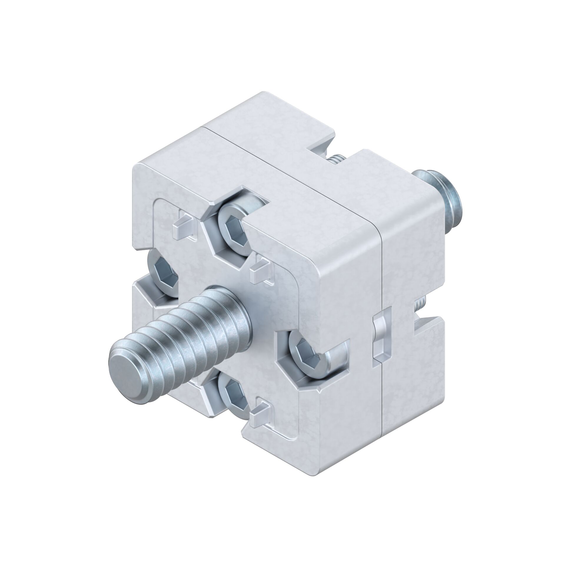 Jeu liaison terminale 45x45 (standard). Jeu liaison terminale 45x45 (standard). Pour la liaison de profilés sur face avant. Version. designLINE. avec vernis argenté spécial (RAL 9006) pour un design de grande qualité. Usinage des profilés :. 30x30 : Taraudage M8 dans l'alésage central. 40x40, 45x45, 50x50 : Inutile