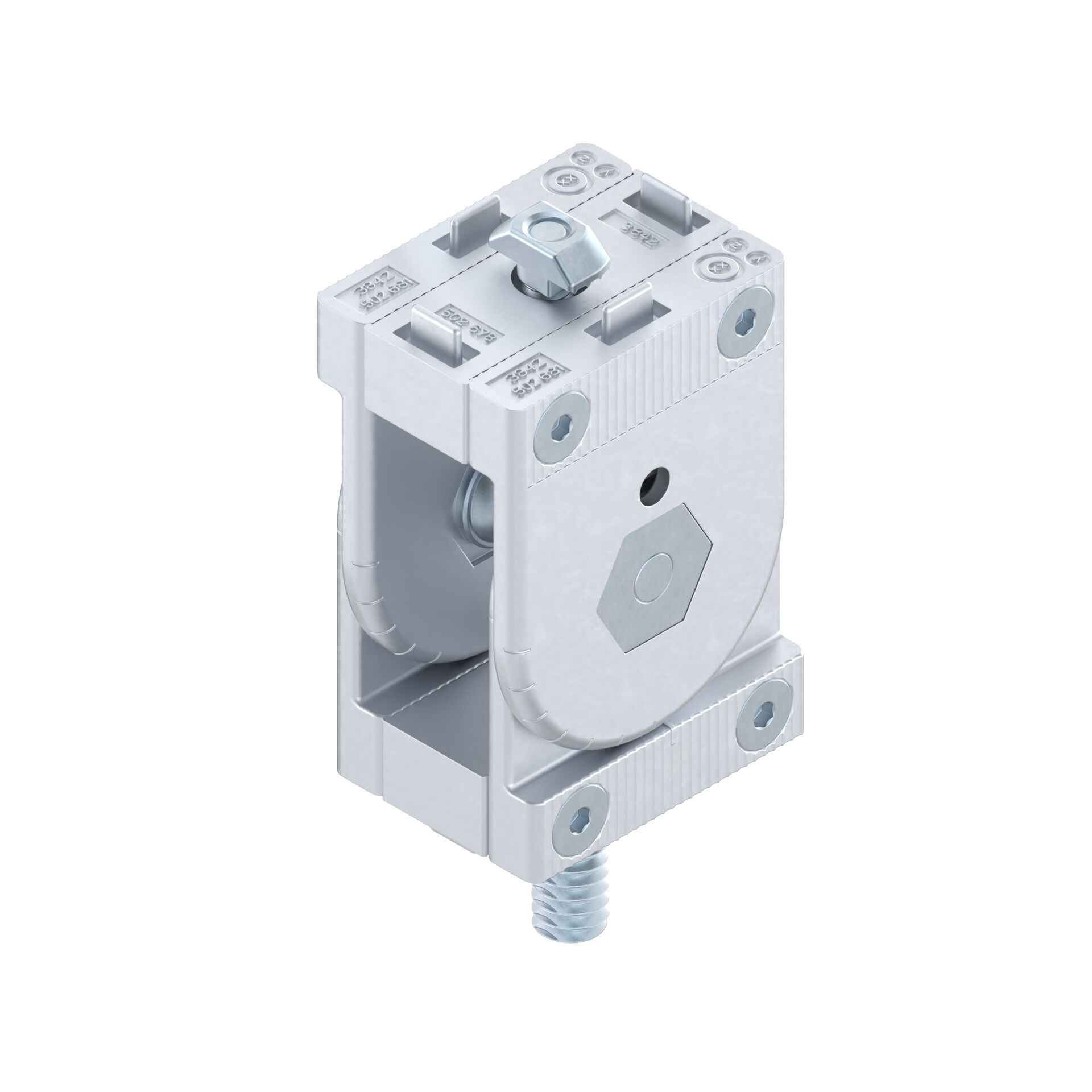 Articulation 60x45 standard. Articulation 60x45 standard. Pour raccords profilés mobiles ou fixes quel que soit l'angle. Plage de pivotement 182°. Avec graduation d'aide par 15°. Dispositif de blocage par serrage (5 Nm) ou goupillage (15 Nm). Réglage de l'articulation à l'aide d'un levier de serrage. Usinage des profilés : Filetage (M12) dans l’alésage central pour une jonction sur face avant