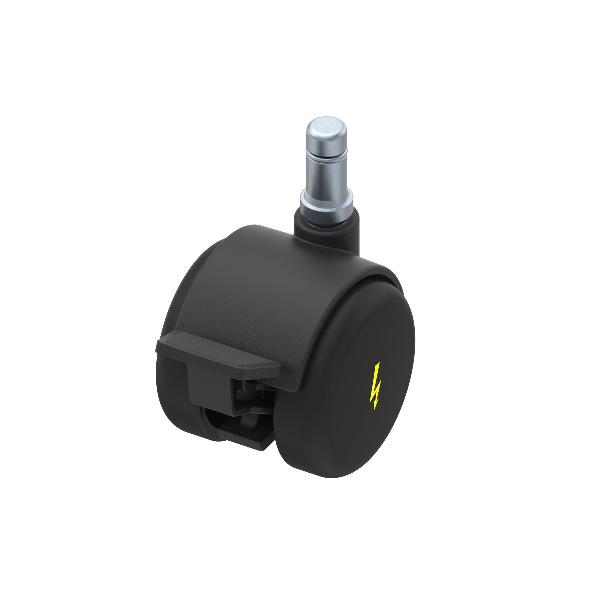 Double roue D50-D10, ESD. Double roue D50-D10, ESD. Double roue au design attrayant pour applications légères. En matériau résistant à l'huile. Double roue avec frein. Double roue D50-D10 à enficher dans l'alésage central de profilé avec diamètre de 10 mm. Double roue D50-M8 à visser dans la rainure de profilé