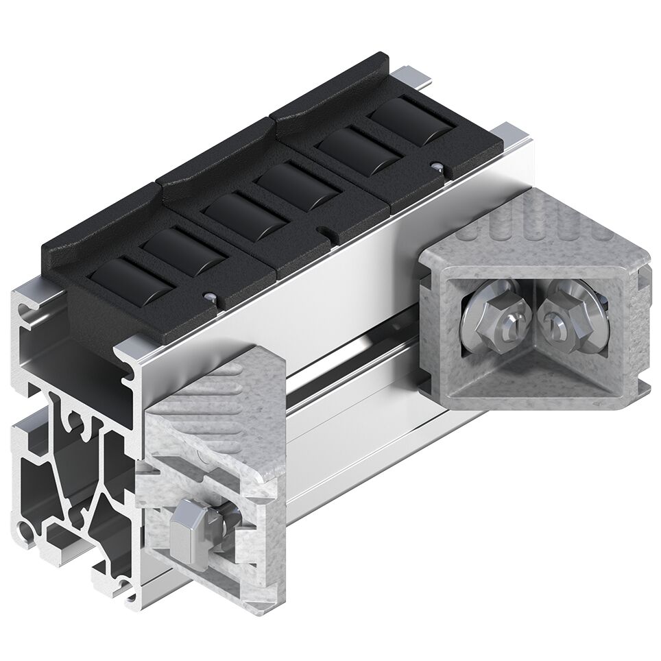 Section à rouleaux RS 2 a = 160. Section à rouleaux RS 2 a = 160. Section à rouleaux non montée pour le transport transversal de palettes porte-pièces entre des sections de convoyage parallèles avec un écart a = 90 jusqu'à 200 mm. Utilisation en combinaison avec deux unités de levée transversales HQ 2. Utilisation possible en tant que section de convoyage passive inclinée. Sans entraînement dédié. Convoyeur : Rouleaux en PA 6. Fonctionnement réversible possible. Adapté pour le montage sur une section ST 2/… avec une largeur de profilé de 45 mm ou une section ST 2/…-H avec une largeur de profilé de 50 mm. Combinable avec palettes porte-pièces WT 2, WT 2/F, WT 2/H, WT 2/F-H et WT 2/LS