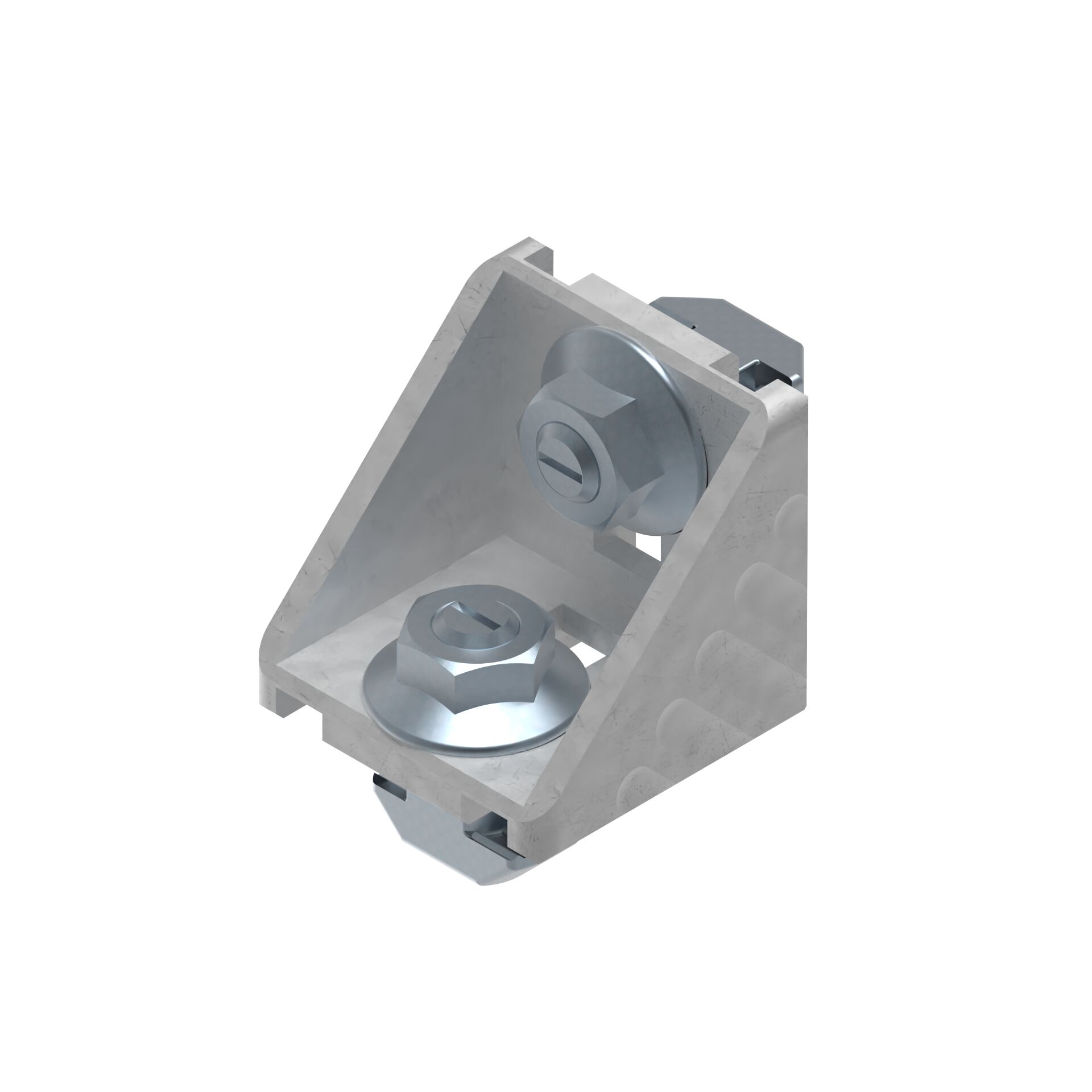 Jeu équerre 45x45 (standard). Jeu équerre 45x45 (standard). Équerre avec ergots de centrage permettant un montage rapide, précis avec sécurité antitorsion. Pour le montage sur plaques ou en travers de la rainure, il suffit de rompre les ergots de centrage. Coulisseau déporté pour positionnement décentré de l'équerre 45/45. Cache de protection contre l'encrassement, disponible en modèle gris signalisation (RAL 7004) et noir ESD (RAL 9005). Usinage des profilés : Inutile