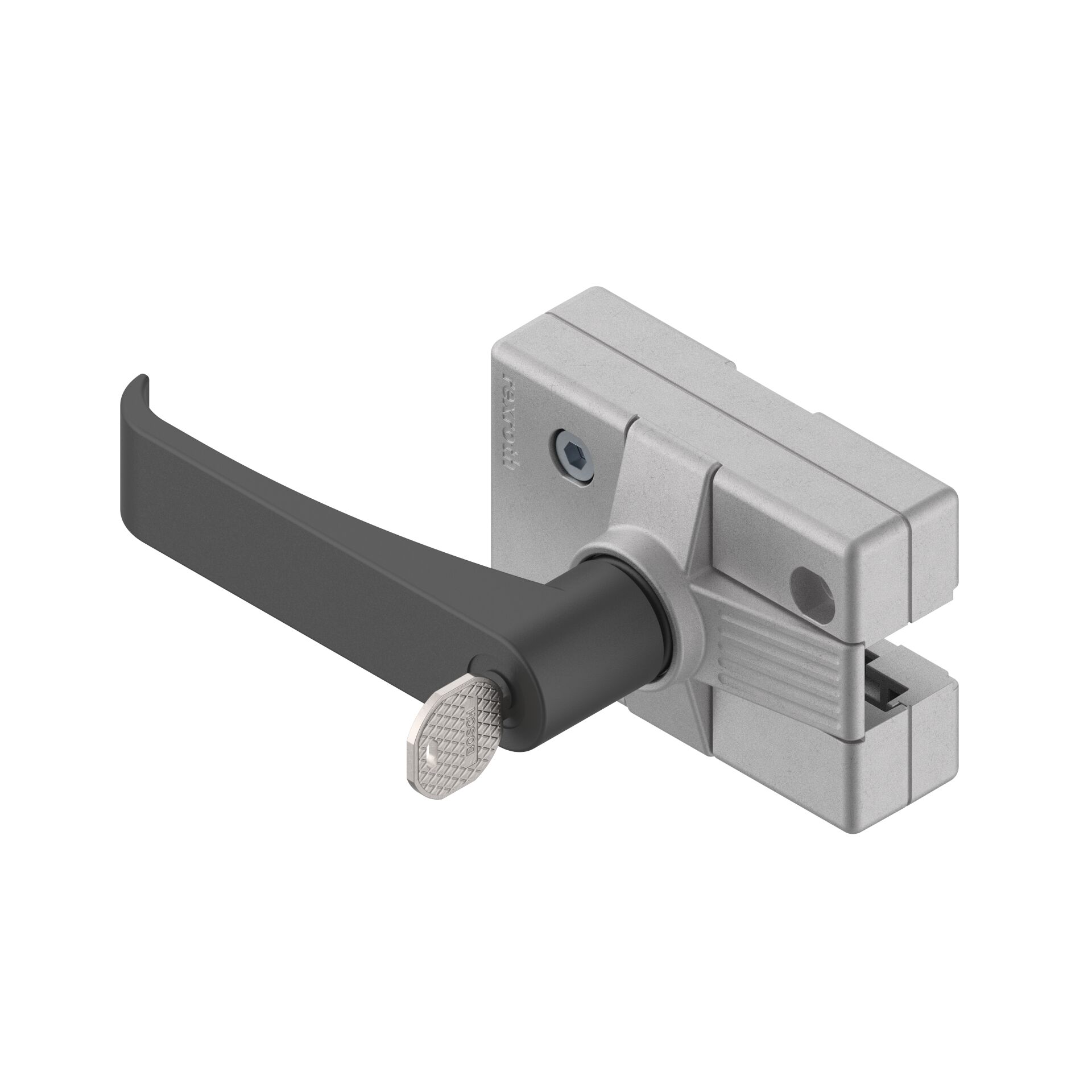Serrure pour portes battantes et coulissantes fermeture standard. Serrure pour portes battantes et coulissantes fermeture standard. Pour butée à droite ou à gauche. Convient aux profilés 45x45 et 30x30. Variante « Fermeture standard » avec sélection aléatoire de clé (chaque serrure a une clé différente). Version avec poignée de porte ou en tant que serrure queue de pic