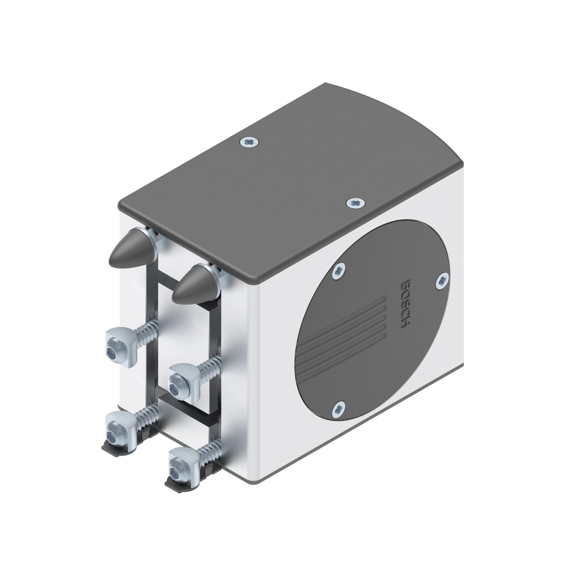 Tête d'entraînement LF12C. Tête d'entraînement LF12C. Tête d'entraînement pour la transmission d'un couple d'entraînement à une courroie dentée. Pour le montage direct d'un moteur ou (en combinaison avec un arbre d'emboîtement) le montage d'une transmission par arbre creux ou d'un coupleur. Pose avec jonction bout à bout directement sur le profilé (élément de jonction inclus dans la fourniture). Usinage des profilés : Perçage de logement à fond plein LF pour jonction bout à bout