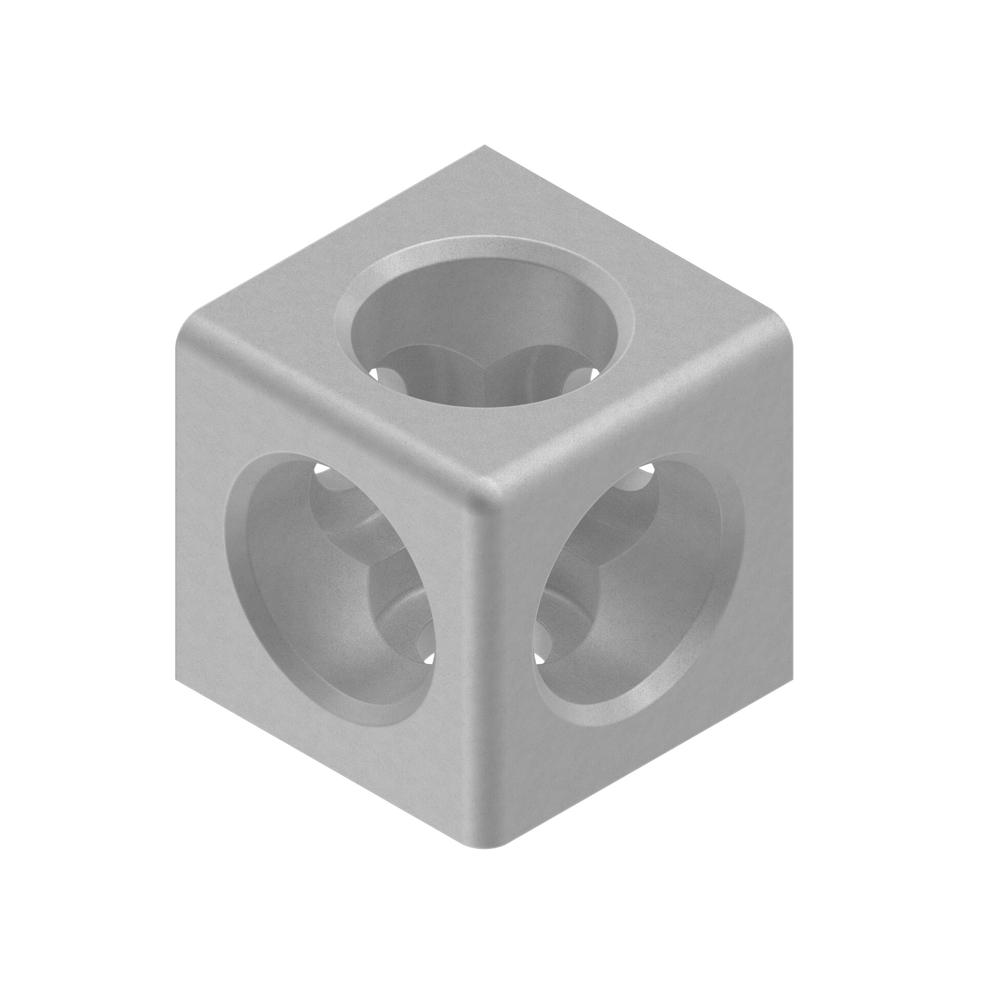 Raccord en cube 40/3. Raccord en cube 40/3. Pour raccord d'angle avec sécurité antitorsion de profilés de section identique. Caches de fermeture des ouvertures. Vissage au profilé par vis autotaraudeuses. Usinage des profilés : Inutile