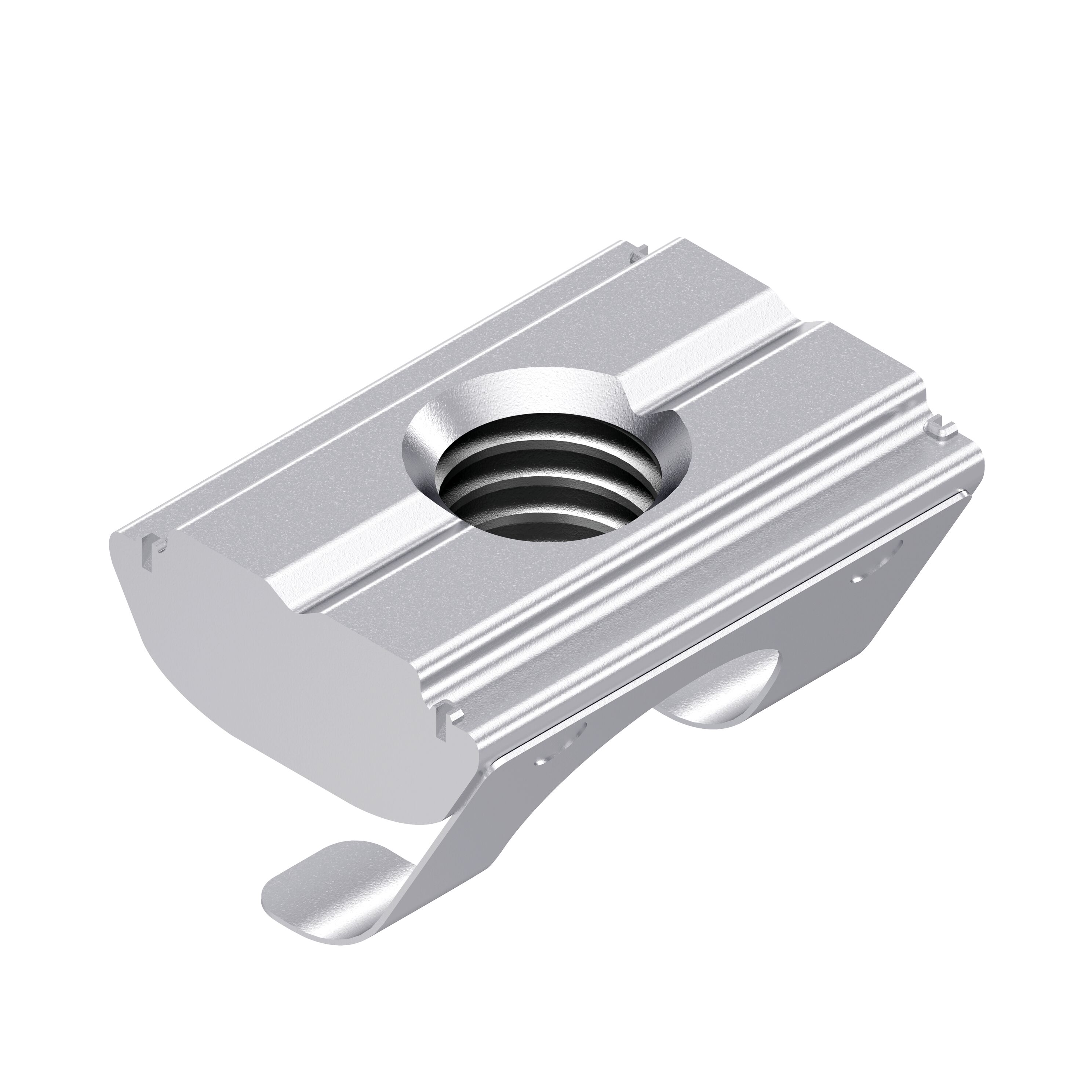 Coulisseau, orientable, avec ressort, rainure 8, acier galvanisé M6. Coulisseau, orientable, avec ressort, rainure 8, acier galvanisé M6. Coulisseau, orientable, avec ressort, pour une insertion directe sur l'emplacement de montage et fixation par ressort attaché. Usinage des profilés : Inutile