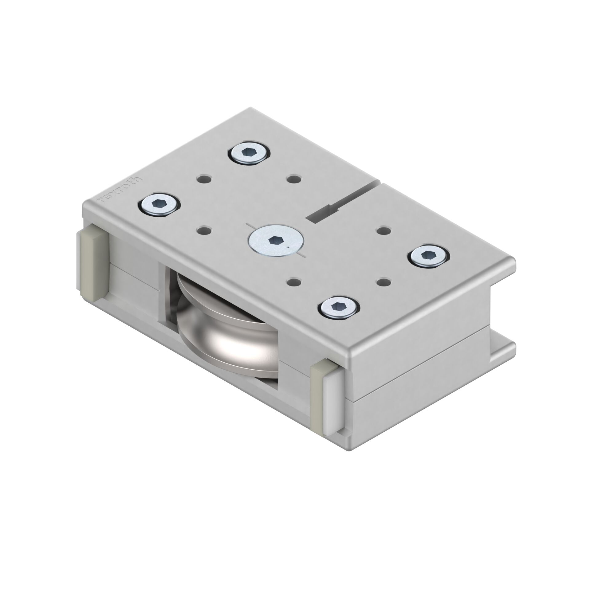 Palier support LF20. Palier support LF20. Palier support pour console, pour l'absorption de forces excentrées. Pour appui sur le rail de guidage. Galets sur roulement à billes, lubrifiés à vie. Feutres graisseurs avec dépôt pour lubrification de la tige de guidage. Réglage sans jeu des galets par boulon d'excentrique. Remplacement des feutres graisseurs possible par l'arrière à l'état monté