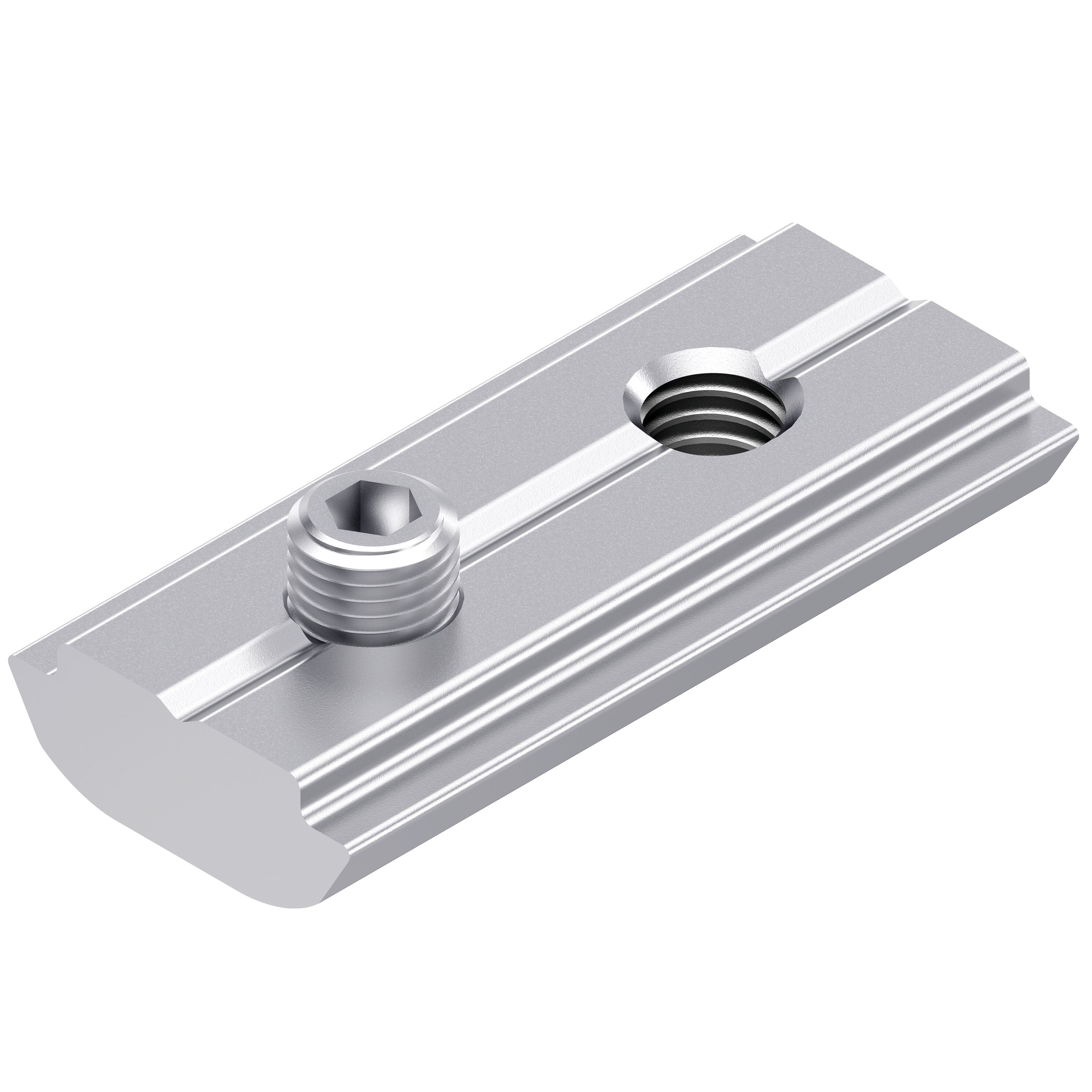 Coulisseau, orientable, avec vis sans tête, rainure 10, acier galvanisé, M5 ; M5. Coulisseau, orientable, avec vis sans tête, rainure 10, acier galvanisé, M5 ; M5. Coulisseau orientable, avec vis sans tête pour une fixation sans vibrations quelle que soit la position. Usinage des profilés : Inutile