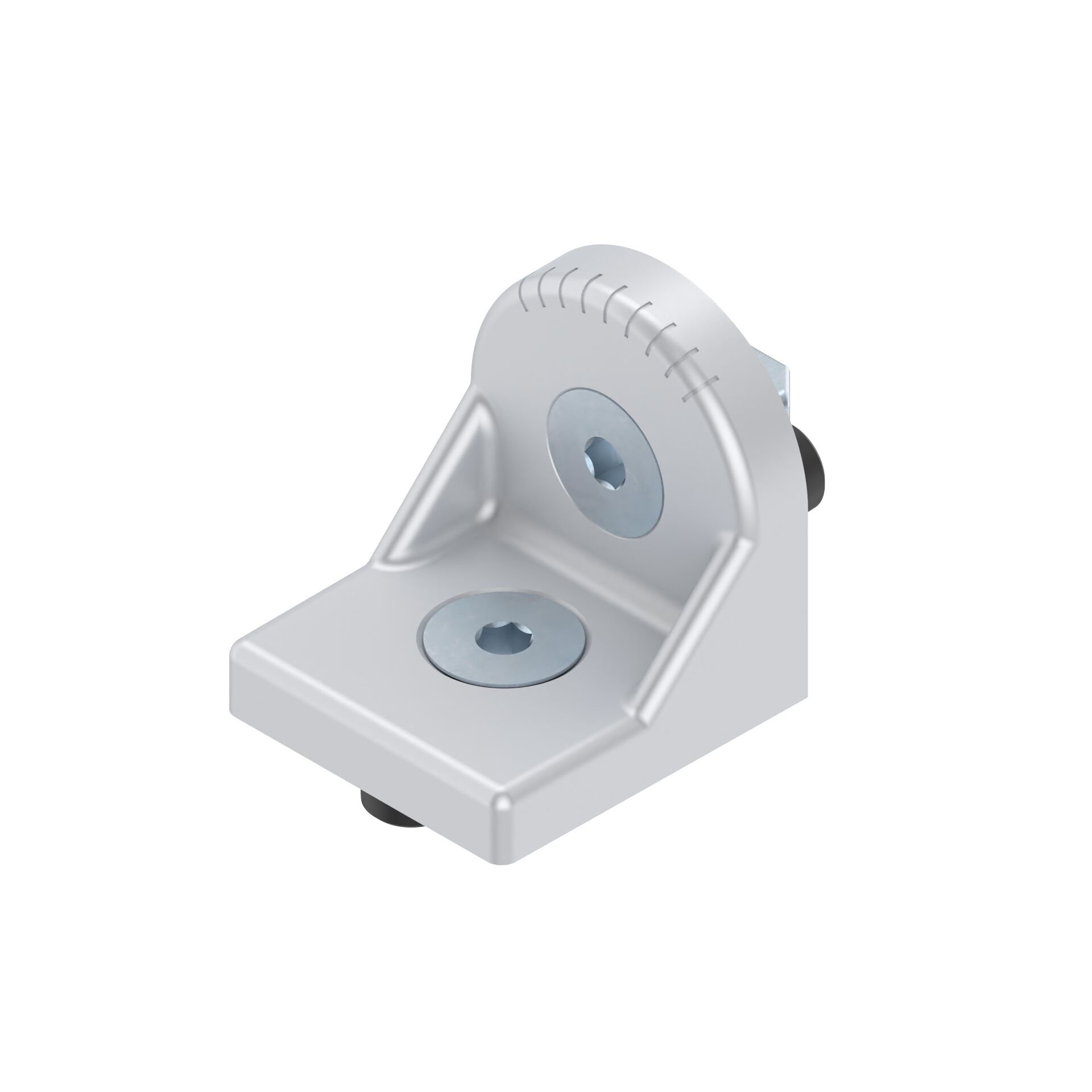 Jeu équerre R40x43 designLINE. Jeu équerre R40x43 designLINE. Pour la jonction de profilés quel que soit l'angle. Aucune arête gênante grâce à sa forme arrondie. Équerre avec ergots de centrage permettant un montage rapide, précis avec sécurité antitorsion. Pour le montage sur plaques ou en travers de la rainure, il suffit de rompre les ergots de centrage. Version. designLINE. avec vernis argenté spécial (RAL 9006) pour un design de grande qualité. Usinage des profilés : Inutile