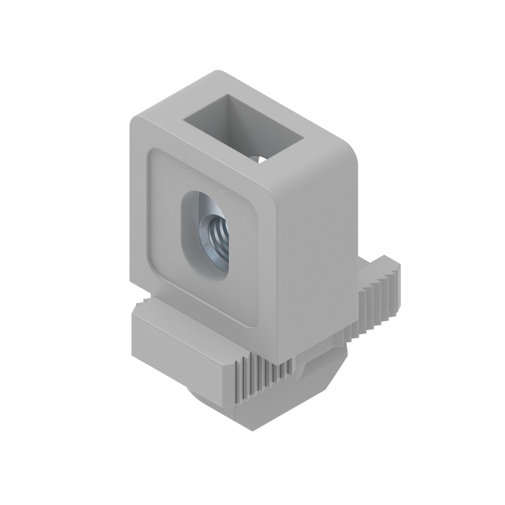 Bloc Variofix rainure 8 PP. Bloc Variofix rainure 8 PP. Pour panneaux de garnissage d'une épaisseur allant jusqu'à 13 mm. Pour une pose ultérieure sur des châssis fermés. La forme asymétrique permet la fixation de panneaux de garnissage dans deux positions différentes. Serrage par clip à cran d'arrêt ou vissage par écrou carré M6 (fourniture) et vis. Circlip pour le raccordement de la vis au panneau de garnissage (directive Machines 2006/42/CE)