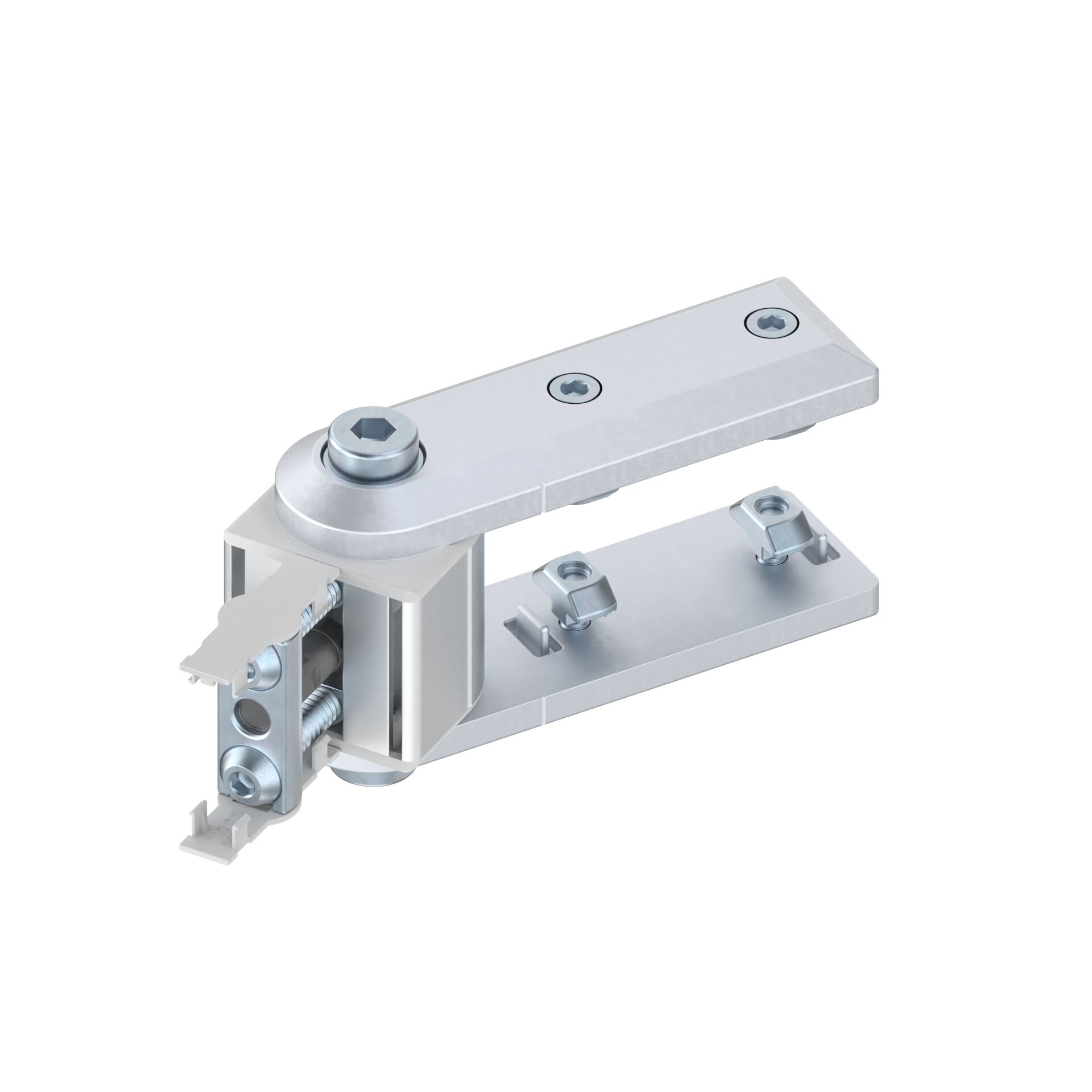 Articulation du bras d'appui 45x45 standard. Articulation du bras d'appui 45x45 standard. Pour raccords profilés sur face avant orientables, p. ex. pour le montage de bras d'appui. Usinage des profilés : Trou traversant D17