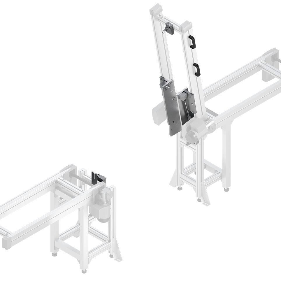 Jeu de montage LG 2/H 2. Jeu de montage LG 2/H 2. Adapté pour les sections à bande BS 2, BS 2/C-100, BS 2/R-300 ainsi que pour les combinaisons de section ST 2/C-H (ST 2/R-H), entraînement AS 2/C-100 (AS 2/R-300) et renvoi UM 2/C-60 (UM 2/R-60). À partir de la largeur b = 240 mm jusqu'à b = 1200 mm. Pour largeur de passage (A) 600 ... 1800 mm. Verrouillé à l'état ouvert (85°). Déverrouillage mécanique, en option également avec déverrouillage pneumatique (kit PN). Commutateur de sécurité en position fermée. Utilisation possible comme section transversale