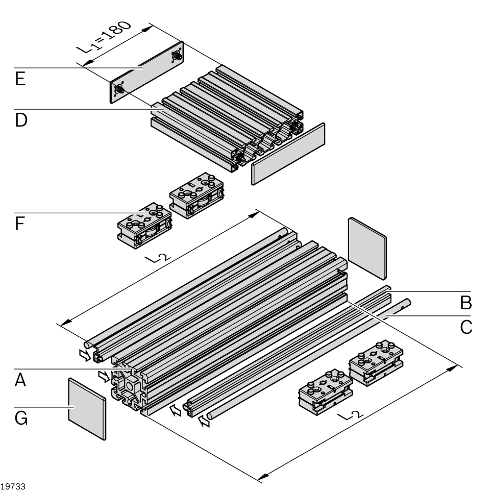 Profilé de serrage LF12C, L150-3000. Profilé de serrage LF12C, L150-3000. Le profilé de serrage est clipsé dans un profilé d'étayage quelconque avec rainure de 10 mm et accueille les tiges de guidage