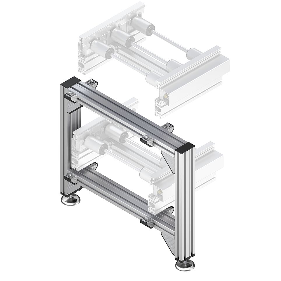 Jambage de section SZ 5/U. Jambage de section SZ 5/U. Jambage de section pour guide-sections disposés les uns sur les autres. Profilés en aluminium extrudé. Pieds réglables en hauteur. Adapté à la conception de sections de convoyage fortement chargées en association avec les unités de sections ST 5/...