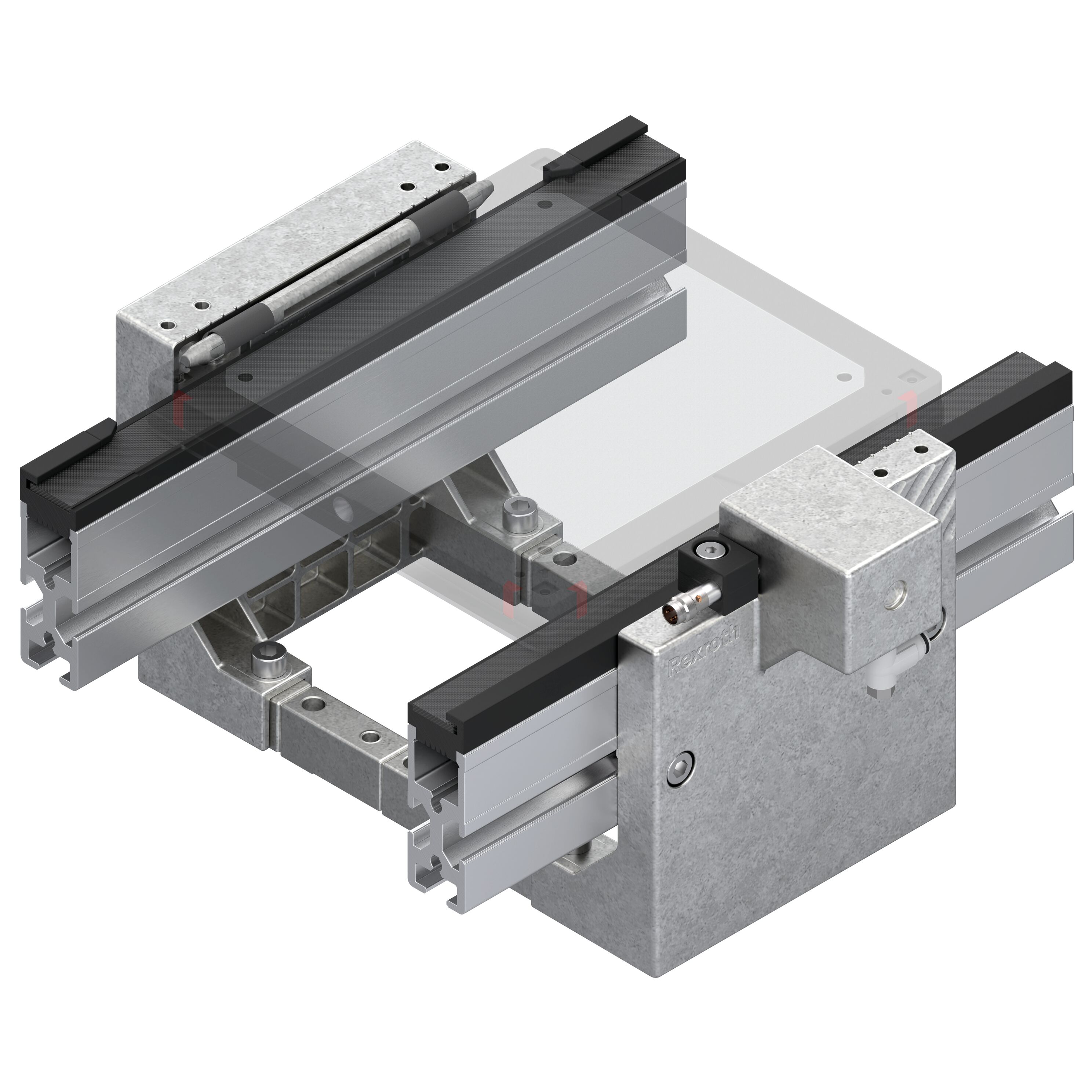 Unité de positionnement PE 1/P pour WT 1/P. Unité de positionnement PE 1/P pour WT 1/P. Utilisable avec les palettes porte-pièces WT 1/S, WT 1/K et WT 1/P. Positionnement par la goupille de serrage et arbre flottant du côté de la palette porte-pièces. Force de processus verticale admissible jusqu'à 100 N, palette porte-pièces incluse. Précision de répétabilité dans le sens X et Y : ± 0,015 mm. Pour le prépositionnement de la palette porte-pièces qui arrive et pour la pré-séparation, un séparateur VE 1 ou VE 1/D doit respectivement être utilisé.. La PE 1/P peut être fixée sans interruption du profilé de section directement sous la section de transport ou sur le plateau de table d'un poste automatique.. La PE 1/P permet l'accès vers la palette porte-pièces, même par le bas.