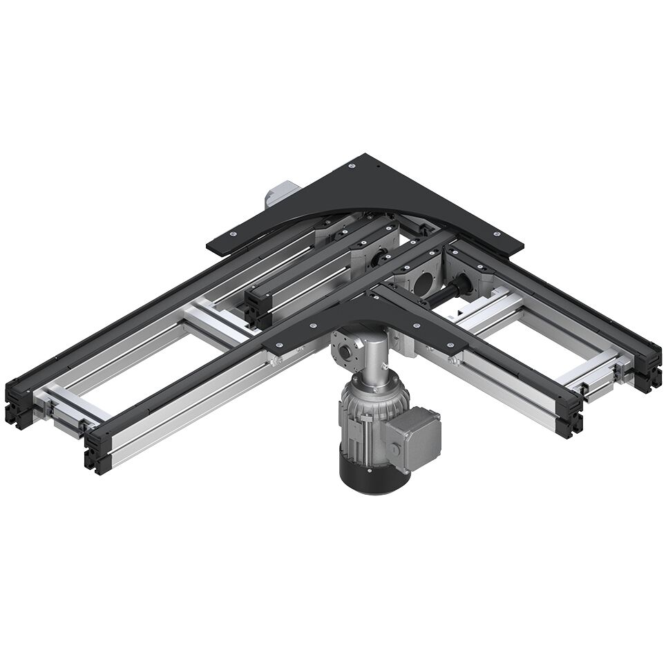 Courbe CU 2/90. Courbe CU 2/90. Transport à courbe de 90° de la palette porte-pièces. Sans entraînement supplémentaire pour la fonction de courbe. Poids total de la palette porte-pièces jusqu'à 10 kg. Moyen de transport : Courroie dentée (appropriée pour une utilisation en EPA). Courbe en version antistatique. Combinable avec WT 2 et WT 2/F