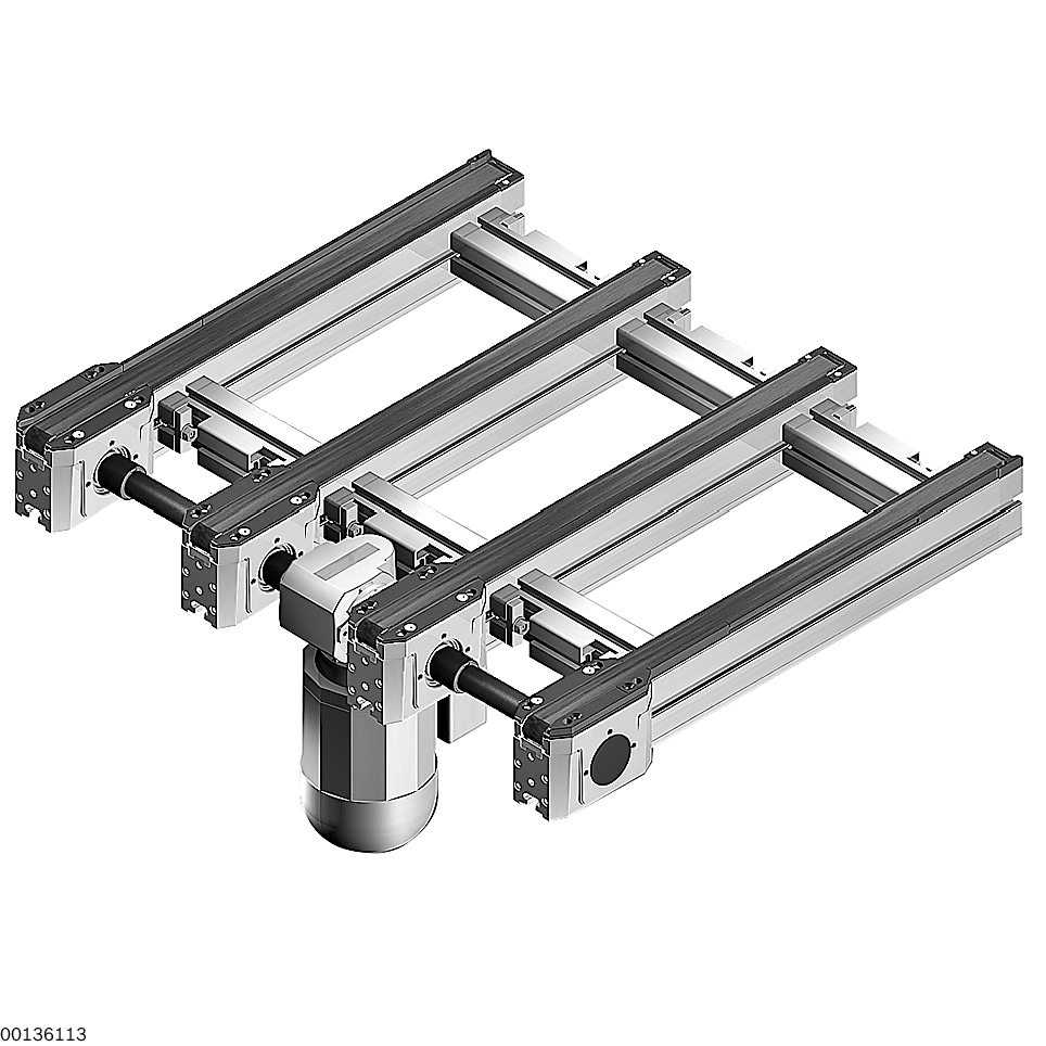 Section à bande CSS/F-4. Section à bande CSS/F-4. Convoyeur avec un coefficient de frottement élevé permettant une accélération ainsi qu'une temporisation élevées. Pas de glissement des modules sur la section à bande. Mêmes dimensions que CSS/B. Transport longitudinal de modules en verre de différentes dimensions. Non conçu pour le fonctionnement en accumulation. Section à bande de deux à cinq voies pour l'appui-support sécurisé des modules en verre sur toute la largeur. L'écartement des voies est définissable individuellement (b1 à b4). Respecter les dimensions minimales. Charge admissible :‒ Par voie : max. 0,15 kg/cm de longueur d'appui et max. 40 kg‒ Par section à bande : max. 120 kg. Adapté pour un fonctionnement réversible (jusqu'à 3 000 mm). Courroie dentée en textile avec couche en PU pour un coefficient de frottement élevé et une meilleure adhérence lors du démarrage et de l'accélération. Changement facile des courroies dentées grâce au démontage par le haut sans avoir à procéder à un nouvel alignement. Les moto-réducteurs conviennent à un fonctionnement avec variateur de fréquence. Montage du moteur à droite (MA = R) ou à gauche (MA = L) possible sur chaque voie de la section à bande (MS = 1 ... 5 ; MS = 1 symbolise la voie de gauche dans le sens de transport). En cas de montage du moteur entre les voies, respecter un écartement minimal de 165 mm (b1 à b4). Montage du moteur à l'extérieur : suspendu ou à l'horizontale ;Montage du moteur entre les voies : suspendu. Raccordement du moteur au choix par câble/connecteur (AT = S) ou bornier de connexion (AT = K). Version avec guidage latéral (FP = 1) de préférence pour modules en verre avec châssis prémontés ; version sans guidage latéral (FP = 0) de préférence pour modules en verre non usinés à bordures brutes. Convient pour une utilisation en salle blanche jusqu'à la classe 6 selon ISO 14644-1