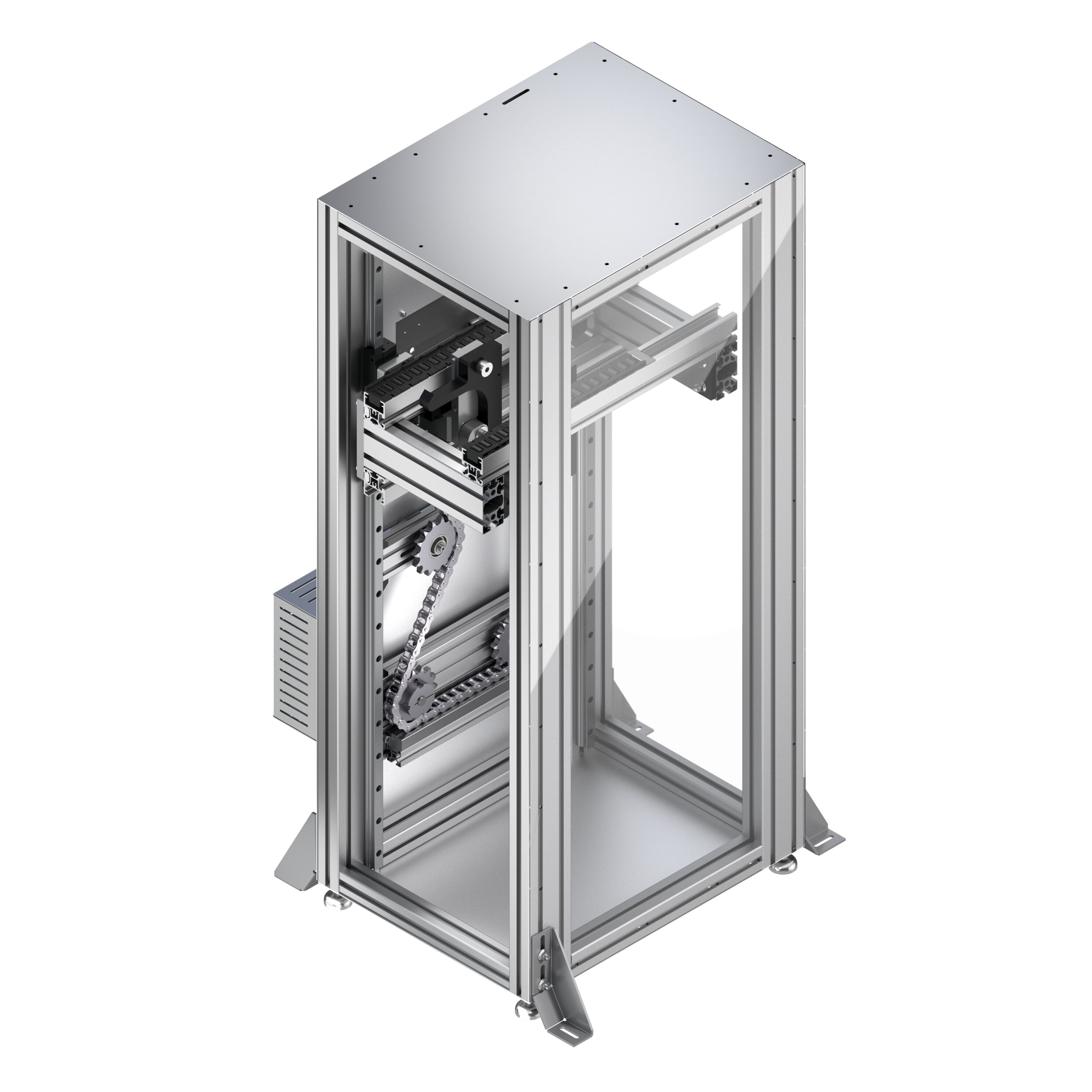 Élévateur EL 2. Élévateur EL 2. Élévateur pour le changement de palette porte-pièces entre deux niveaux de transport différents. Entraînement par servomoteur synchrone MSM avec codeur absolu. - Interface : connecteur enfichable pour raccordement du codeur et de la puissance. - Frein de retenue à actionnement électrique. Élévateur pour le transport vertical d’une palette porte-pièces d’une section inférieure à une section supérieure ou vice versa. Conception comme un élévateur de tête. Convient pour l’utilisation d’une zone ESD protégée. Pour toutes les dimensions de la palette porte-pièces jusqu’à 800 x 800 mm. Hauteur de transport inférieure possible à partir de 290 mm. Poids total de la palette porte-pièces jusqu’à 60 kg. Courtes durées de cycle possibles jusqu’à 7,9 s. Levées jusqu’à 1 500 mm possibles. Avec trappe de maintenance pour les besoins d’entretien. Choix partiellement possible du matériau du couvercle de protection. Le produit à transporter ne doit dépasser ni la largeur (b. WT. ) ni la longueur (I. WT. ) de la palette porte-pièces