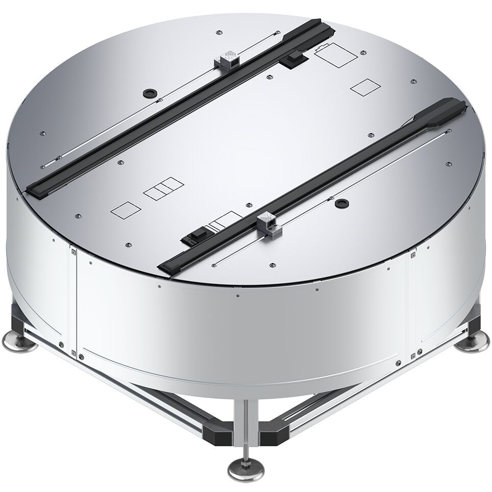 Unité de rotation DE 2 - BG 3. Unité de rotation DE 2 - BG 3. L'unité de rotation et un module pour la rotation horizontale et le transport de la palette porte-pièces. Ainsi les jonctions et les croisements deviennent possibles pour les palettes porte-pièces lourdes (jusqu’à 160 kg)