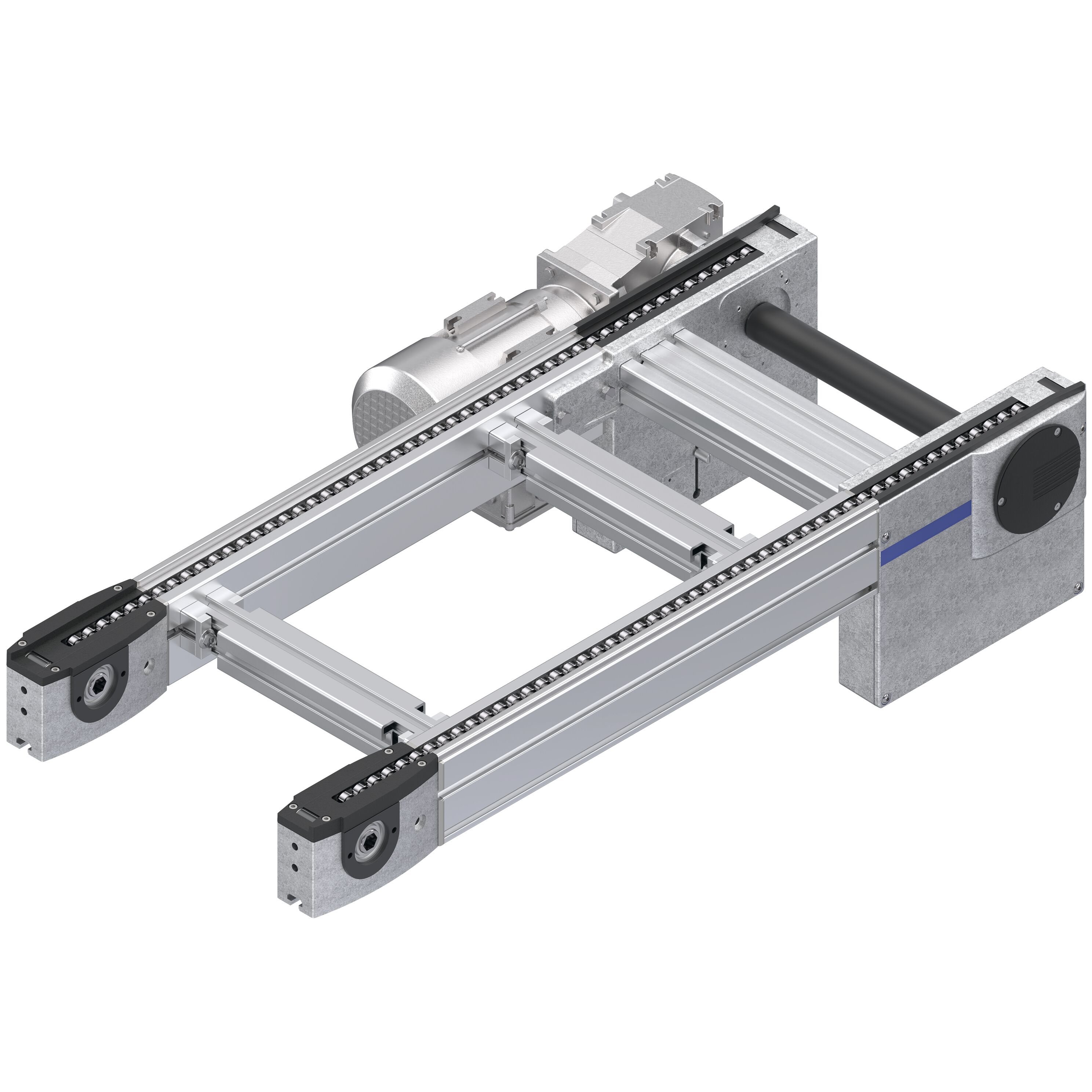 Section à bande BS 2/R-V-1200. La section à bande est une section de transport prête à fonctionner avec entraînement propre pour le transport de palettes porte-pièces dans le sens longitudinal ou pour le transport transversal de la palette porte-pièces entre des sections de transport parallèles en lien avec deux unités de levée transversales HQ 2. Section de convoyage prête à fonctionner complète avec entraînement pour des vitesses élevées de la palette porte-pièces. Construction robuste pour des installations à charge particulièrement élevée. Moyen de transport : Chaîne à galets d'accumulation V. plus. (appropriée pour une utilisation en EPA). Fonctionnement réversible possible si l ≤ 2 000 mm et chaînes à galets d'accumulation sans protection de petites pièces. Montage du moteur à droite, à gauche ou au milieu. Raccordement du moteur : au choix avec câble/connecteur ou avec bornier de connexion. Versions spéciales sur demande. Sur la chaîne à galets d’accumulation Vplus, la palette porte-pièces atteint une vitesse jusqu’à 2,5 fois supérieure à la vitesse de la chaîne. Par conséquent, il convient de prendre des mesures particulières pour les vitesses de chaîne > 9 m/min !. Le positionnement des WT dans la zone des têtes d’entraînement/têtes de renvoi n’est pas autorisé.