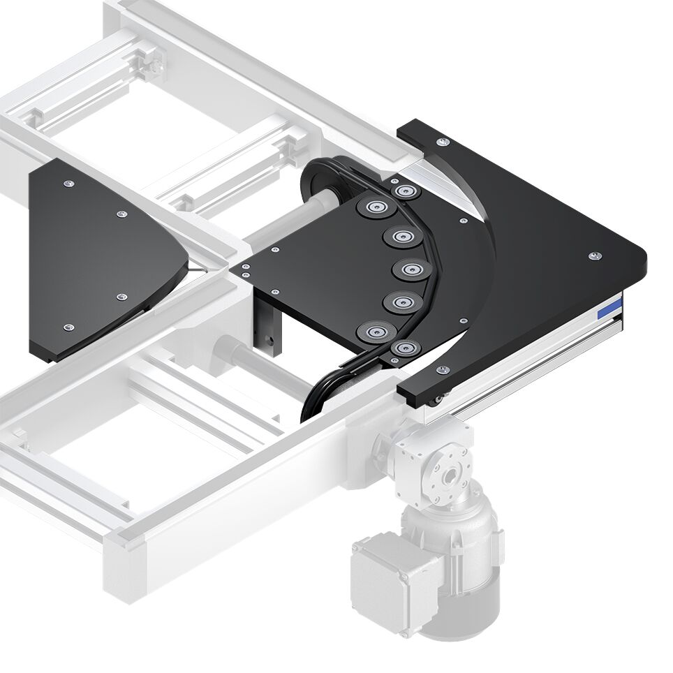Courbe KE 2/O-90 LS. Courbe KE 2/O-90 LS. Transport à courbe de 90° de la palette porte-pièces. Convient pour la combinaison avec sections à bande BS 2 ou BS 2/K. Courbe sans entraînement dédié. Poids total de la palette porte-pièces jusqu'à 20 kg. Moyen de transport : Courroie ronde (appropriée pour une utilisation en EPA). Combinable avec palettes porte-pièces WT 2, WT 2/F et WT 2/LS (uniquement avec la version LS). Fonctionnement en accumulation non autorisé