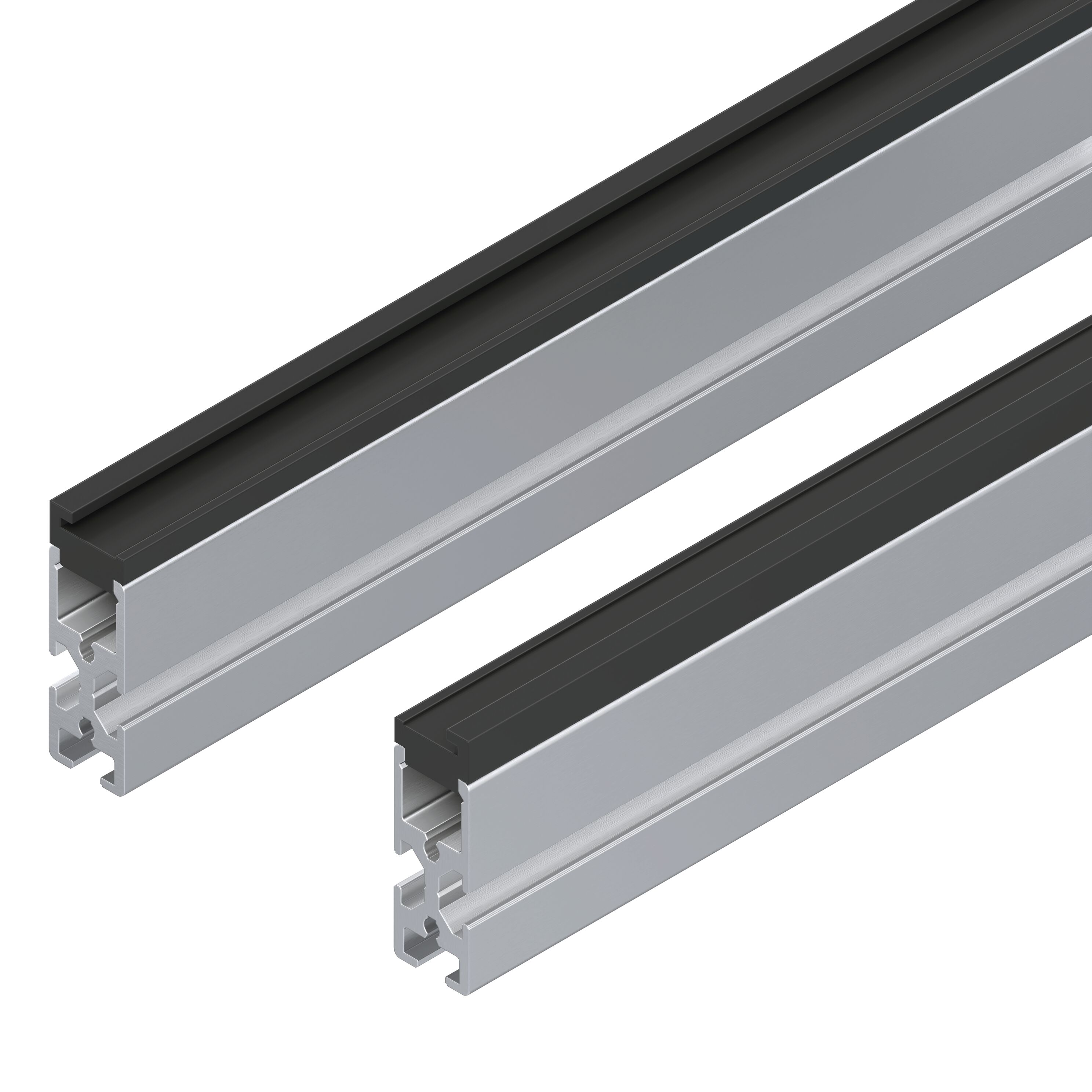 Section ST 1. Section ST 1. Profilé de section SP 1 en tant qu'élément porteur. Profilé de guidage GP 1 pour le guidage de la courroie GT 1 ; peut facilement être remplacé en cas d'usure.. Longueur maximale l. max. = 6000 mm