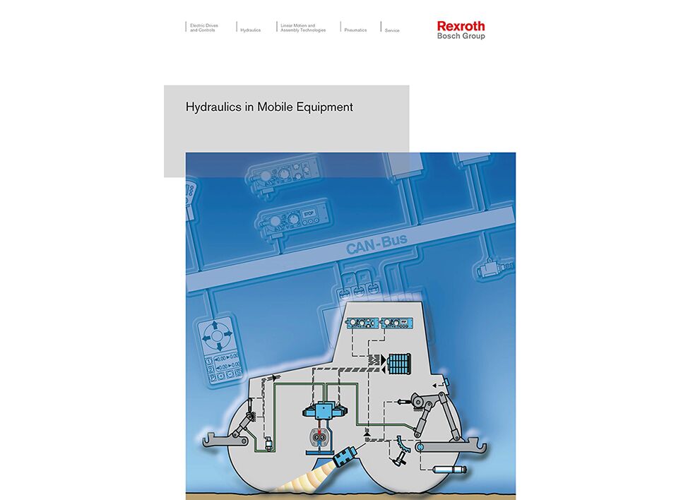 Livre spécialisé "Hydraulique dans les engins mobiles", EN. Introduction à l’hydraulique. Les pompes et moteurs hydrauliques en général. Pompes et moteurs à engrenages. Pompes électrohydrauliques. Groupes compacts. Vannes d’arrêt. Distributeurs de commande de pression. Distributeurs de débit. Distributeurs. Circuit de base de l’hydraulique mobile. Blocs de distributeurs mobiles. Applications. Relevage à contrôle électrohydraulique pour les tracteurs (EHR). Entraînements hydrostatiques de ventilateurs dans les véhicules. Le bus CAN dans l’hydraulique mobile. Fluides