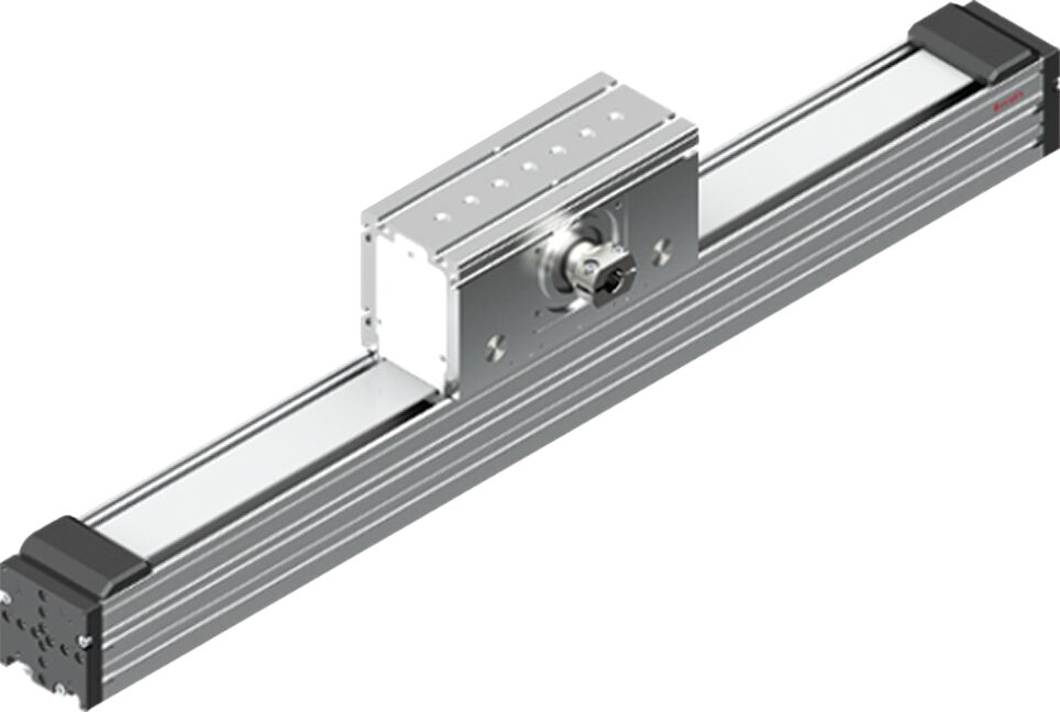 Module Oméga OBB, taille 55. Disponible en trois tailles allant jusqu’à une longueur de 5 500 mm. Avec réducteur planétaire (PG) ou réducteur planétaire à renvoi d’angle (WPG) avec différents rapports de transmission. Élément de blocage pneumatique en option. Gamme complète d’accessoires disponible