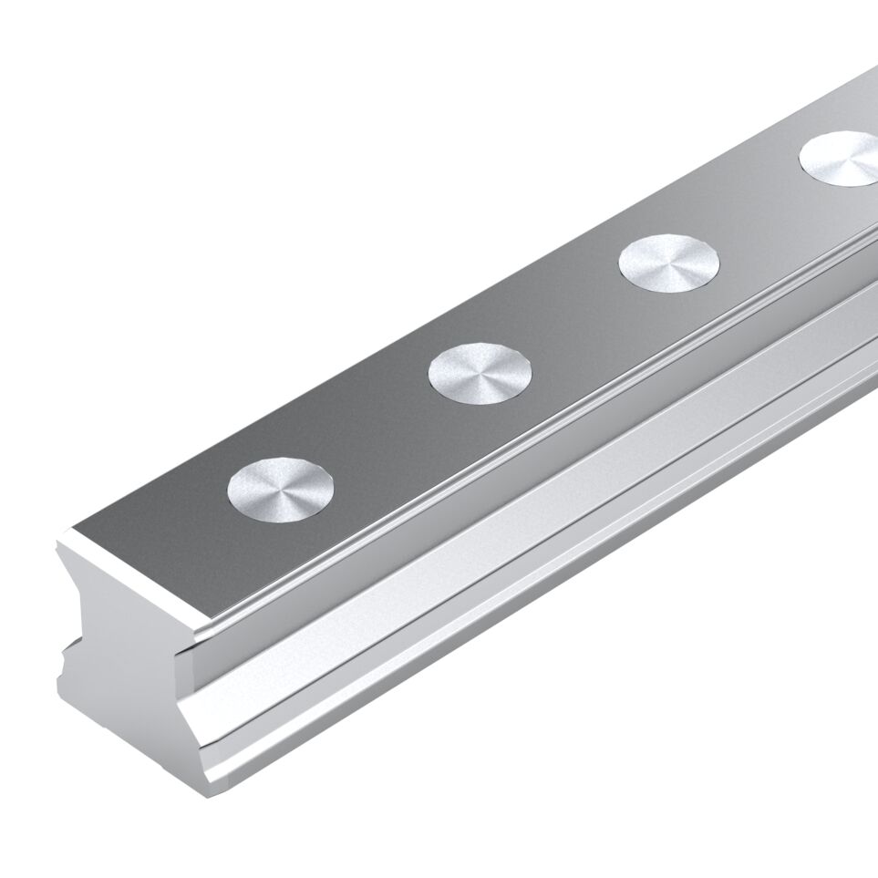 Rail de guidage à rouleaux, SNS, taille 65, acier CS, précision élevée. Le rail de guidage à rouleaux est très précis et possède les propriétés suivantes:. Taille de construction 65. Modèle SNS: Largeur = étroit, longueur = normal, hauteur = standard. Rail de guidage en acier au carbone CS. Fixation MA: Vissage par le haut. Couvercle SK: Capsules de protection en acier (à commander séparément). Classe de précision élevée. Nombre de tronçons: un tronçon. Rail en version standard. À fixation par le haut. Trempés et rectifiés sur toutes les faces dans la zone du chemin de roulement. Rigidité maximale dans toutes les directions de la charge. Résistance extrêmement élevée aux moments de couple