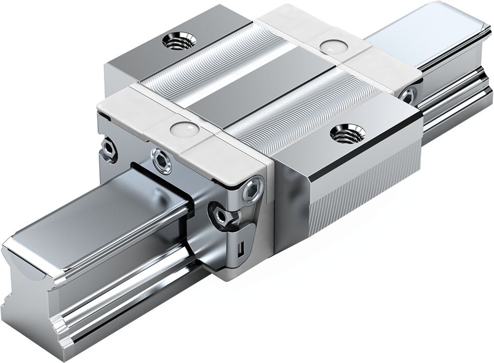 Guide à billes NRFG, FKS, taille 15, Resist NR, précision élevée, faible précharge. Le guide à billes très précis en Resist NR convient pour l’utilisation dans l’industrie de l’emballage et dans certains secteurs de l’industrie alimentaire. En outre, il se distingue par les caractéristiques du produit suivantes:. Taille de construction 15. Modèle FKS: Largeur = à bride, longueur = court, hauteur = standard. Corps du chariot de guidage et toutes les pièces d’acier en acier résistant à la corrosion selon DIN 10088. Classe de précharge C1: Faible précharge. Classe de précision H: Élevée. Sans cage à billes. Sans conservation. Sans lubrification initiale. Sans élément à rapporter à gauche (bord de butée avant). Sans élément à rapporter à droite (bord de butée avant). Raccordement de lubrification droit fourni en vrac.. Corps du chariot de guidage en version standard. Longueur totale du chariot de guidage = 44,7 mm. Construction interchangeable: Les chariots de guidage et les rails de guidage peuvent être combinés entre eux dans chaque précision.. Toutes les pièces métalliques sont fabriquées en acier résistant à la corrosion. Toutes les pièces en plastique sont en matériaux certifiés. Excellentes valeurs dynamiques. Capacités de charge élevées égales dans les quatre directions principales de la charge. Convient pour tous les rails à billes SNS. Lubrification longue durée possible sur plusieurs années. Raccords de lubrification sur toutes les faces, avec filetage métallique. Interchangeabilité illimitée grâce aux nombreuses possibilités de combinaison de toutes les exécutions de rails à billes avec toutes les variantes de guides à billes dans chaque classe de précision. Rigidité maximale du système grâce à une réalisation en O préchargée. Taraudage de fixation sur face avant pour l'ensemble des pièces rapportées. Rigidité élevée dans toutes les directions de charge – de ce fait utilisable en tant que guide individuel. Dispositif d'étanchéité intégré assurant une étanchéité complète. Variations réduites de la déformation élastique grâce à la forme optimale de la zone d'entrée et au nombre élevé de billes. Fonctionnement silencieux et souple grâce à la conception optimale de la recirculation et du guidage des billes. Éléments rapportés à fixation par le haut et par le bas sur le guide à billes