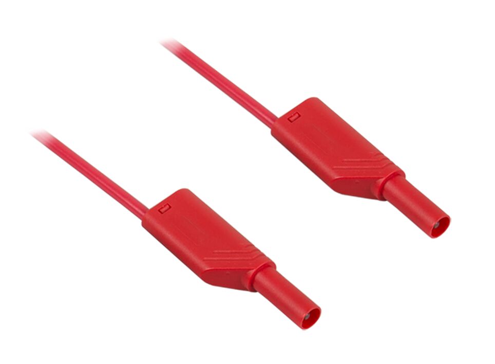 Conduite de mesure 1000 mm, rouge. Conduite de mesure pour réaliser des connexions enfichables électriques sûres pour les montages des exercices. Conduite de mesure avec fiches bananes isolées de 4 mm