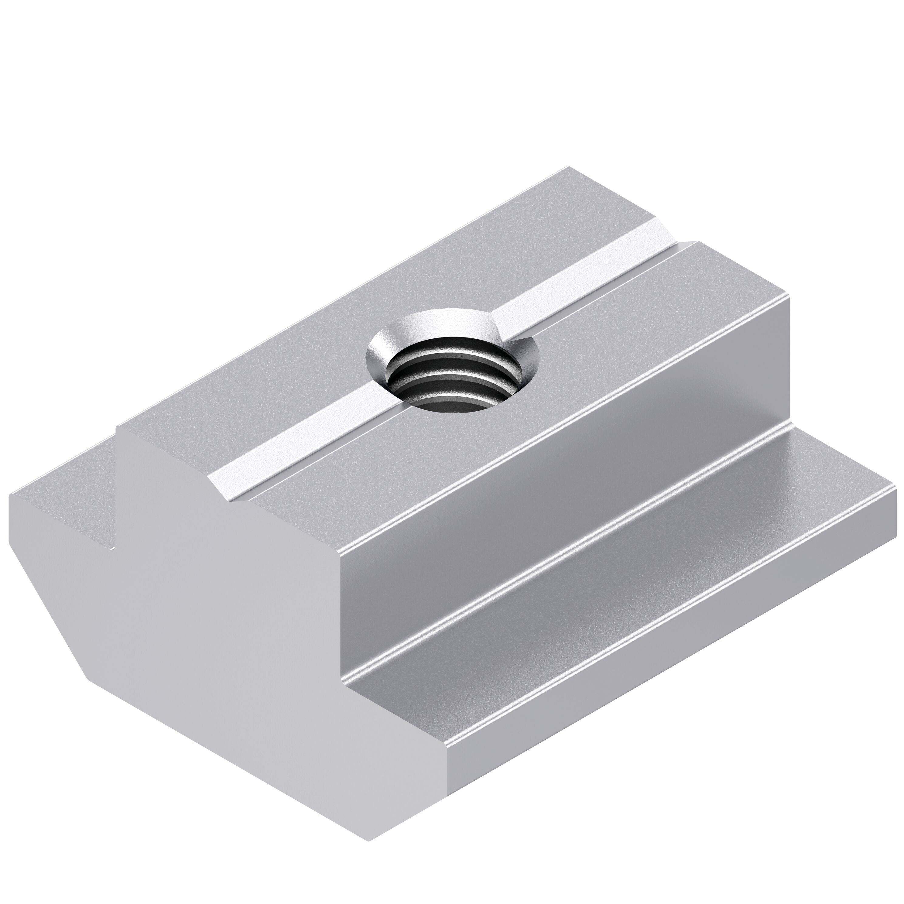 Coulisseau, rainure 10, acier galvanisé, M5. Coulisseau, rainure 10, acier galvanisé, M5. Coulisseau pour une absorption sûre de forces élevées. Ressort facilitant le montage et le positionnement du coulisseau. Usinage des profilés : Inutile
