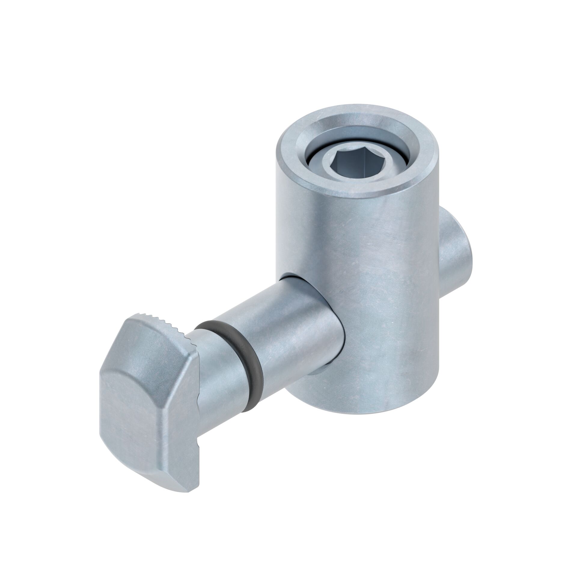 Joint de serrage rapide 0° acier, galvanisé N10. Joint de serrage rapide 0° acier, galvanisé N10. Pour la jonction perpendiculaire de deux profilés. Grande accessibilité pour les outils lors du montage. Joint torique de fixation permettant un montage en hauteur. Le joint de serrage rapide peut être orienté dans la rainure de profilé sur l'emplacement de montage. Usinage des profilés : Perçage de logement à fond plein DI, DB11, DB17 ou trou traversant DI, D11, D17. En cas d'utilisation d'une joue de protection, respecter les écarts d'espacement de perçage et de capacité de charge