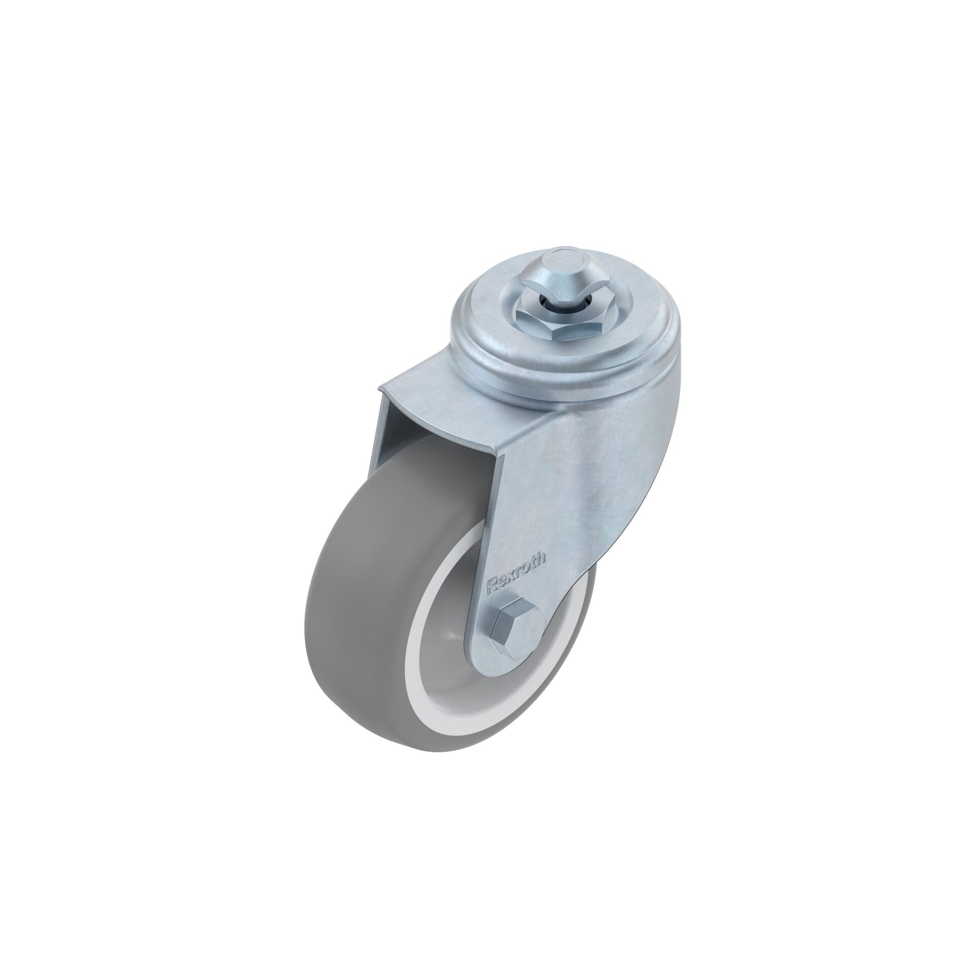 Roulette, caoutchouc, F900. Roulette, caoutchouc, F900. Préservant particulièrement le sol. Adapté aux zones sensibles ESD. Matériau conducteur selon DIN EN 61340-5-1 ; résistance de fuite ≤ 10. 6. Ω. Usage polyvalent. Roues présentant de très bonnes propriétés de roulement. Possibilité de monter le rouleau dans la rainure profilée ou dans l’alésage central de profilé (accessoires requis). Usinage des profilés : Taraudage M12 en cas de montage dans l'alésage central de profilé