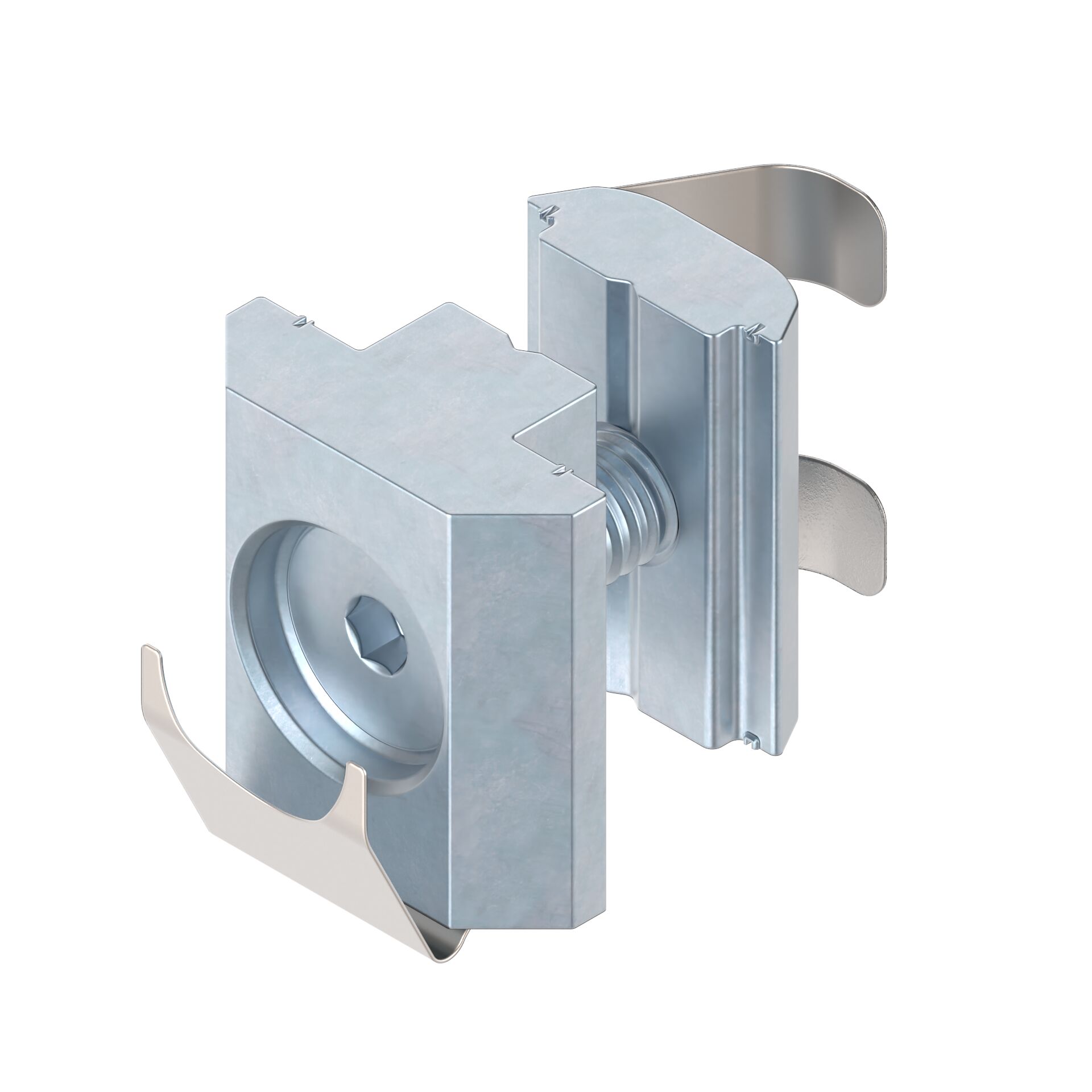 Connecteur parallèle N10. Connecteur parallèle N10. Pour une jonction sans jeu de deux profilés d'étayage, parallèle à l'axe ou selon un angle quelconque. Les connecteurs parallèles se composent de deux coulisseaux à ressorts soudés pour un montage simple. Jonction intérieure et esthétique, p. ex. pour les niveaux de matériaux. Jonction réalisable dans n'importe quelle position. Force de glissement transmissible par connecteur parallèle : 600 N. Usinage des profilés : Trou traversant