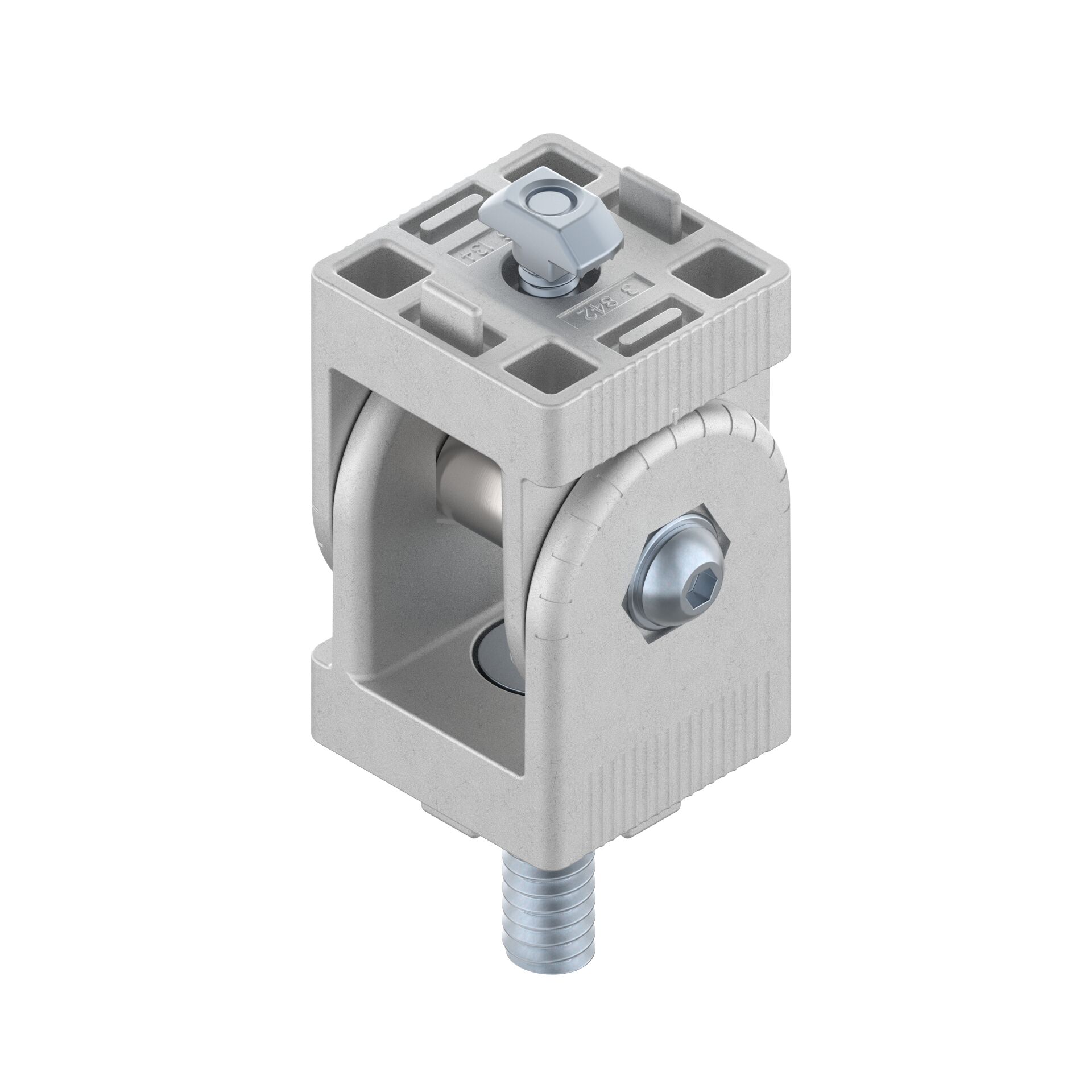 Articulation 45x45 support standard. Articulation 45x45 support standard. Pour raccords profilés mobiles ou fixes quel que soit l'angle. Plage de pivotement 180°. Avec graduation d'aide par 15°. L'articulation support peut être serrée (5 Nm) et réglée facilement au moyen d'un levier de serrage