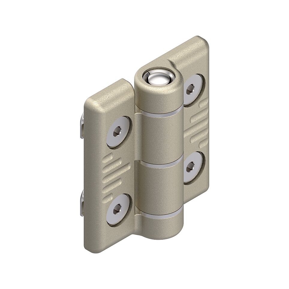 Charnière en aluminium P1=20 P2=20. Charnière en aluminium P1=20 P2=20. Montage dans la rainure. Montage possible sur panneaux de garnissage massifs. Construction de haute qualité. Conception conductrice. Utilisation possible dans les conditions imposées par les salles blanches grâce aux douilles de glissement résistantes à l'usure