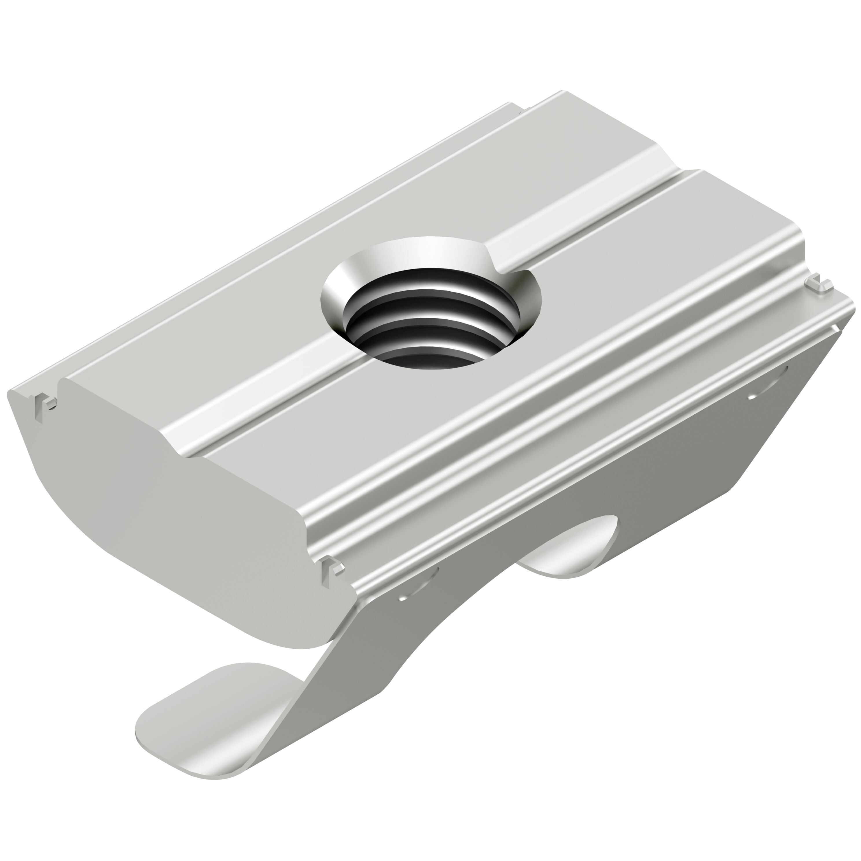 Coulisseau, orientable, avec ressort, rainure 10 acier, inoxydable M6. Coulisseau, orientable, avec ressort, rainure 10 acier, inoxydable M6. Coulisseau, orientable, avec ressort, pour une insertion directe sur l'emplacement de montage et fixation par ressort attaché. Usinage des profilés : Inutile