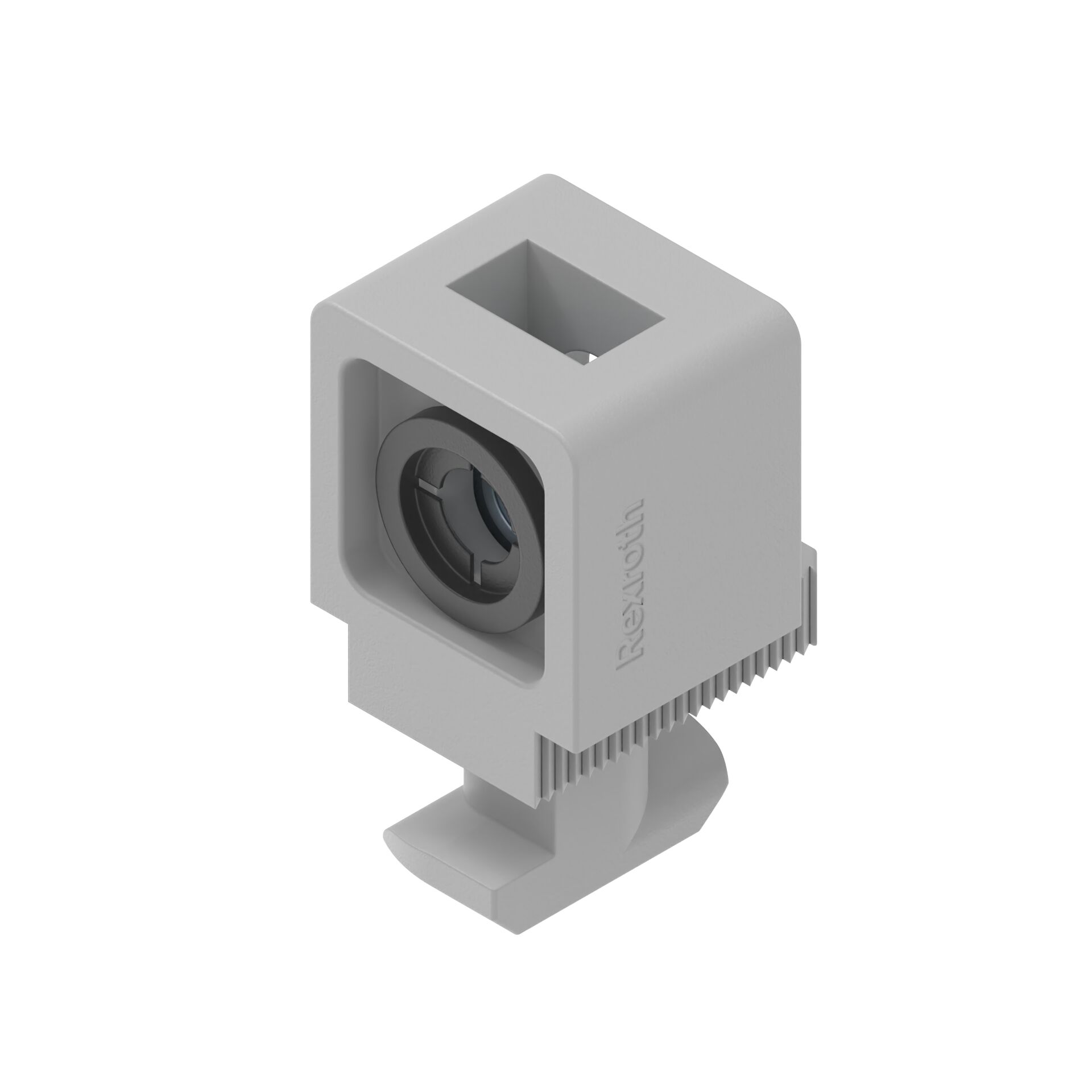Bloc Variofix rainure 10 PP. Bloc Variofix rainure 10 PP. Pour panneaux de garnissage d'une épaisseur allant jusqu'à 13 mm. Pour une pose ultérieure sur des châssis fermés. La forme asymétrique permet la fixation de panneaux de garnissage dans deux positions différentes. Serrage par clip à cran d'arrêt ou vissage par écrou carré M6 (fourniture) et vis. Circlip pour le raccordement de la vis au panneau de garnissage (directive Machines 2006/42/CE)