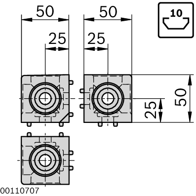 Jeu raccord en cube 50/3 (standard). Jeu raccord en cube 50/3 (standard). Pour raccord d'angle avec sécurité antitorsion de profilés de section identique. Caches de fermeture des ouvertures. Vissage au profilé par vis autotaraudeuses. Usinage des profilés : Inutile