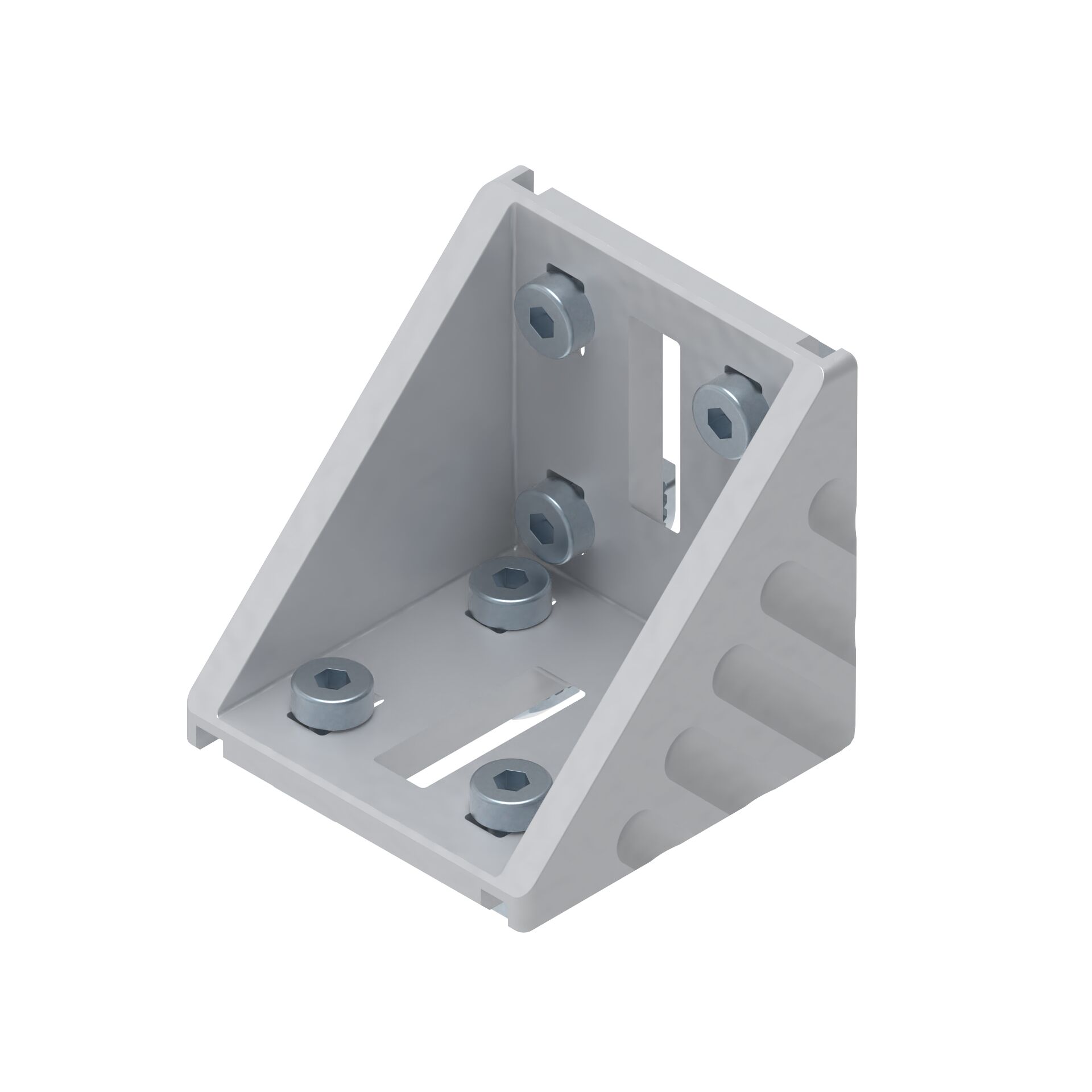 Jeu équerre 60x60 designLINE, rainure 8/8. Jeu équerre 60x60 designLINE, rainure 8/8. Équerre avec ergots de centrage permettant un montage rapide, précis avec sécurité antitorsion. Pour le montage sur plaques ou en travers de la rainure, il suffit de rompre les ergots de centrage. Version designLINE avec vernis argenté spécial (RAL 9006) pour un design de grande qualité. Pièce intermédiaire pour le positionnement d'équerres dans la rainure directement supérieure. Cache de protection contre l'encrassement, disponible en modèle gris signalisation (RAL 7004) et noir ESD (RAL 9005). Usinage des profilés : Inutile