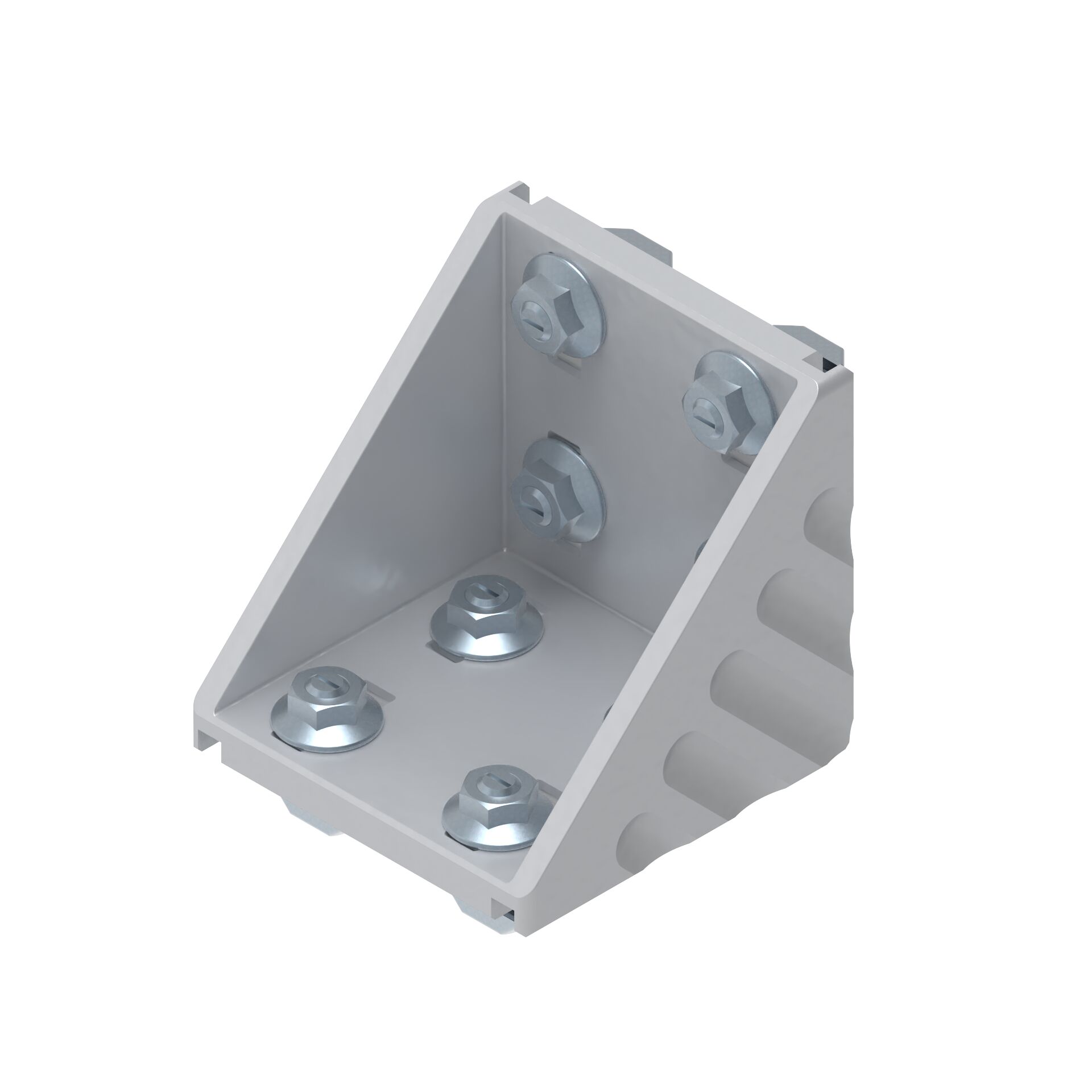 Jeu équerre 90x90 designLINE. Jeu équerre 90x90 designLINE. Équerre avec ergots de centrage permettant un montage rapide, précis avec sécurité antitorsion. Pour le montage sur plaques ou en travers de la rainure, il suffit de rompre les ergots de centrage. Version designLINE avec vernis argenté spécial (RAL 9006) pour un design de grande qualité. Cache de protection contre l'encrassement, disponible en modèle gris signalisation (RAL 7004) et noir ESD (RAL 9005). Usinage des profilés : Inutile