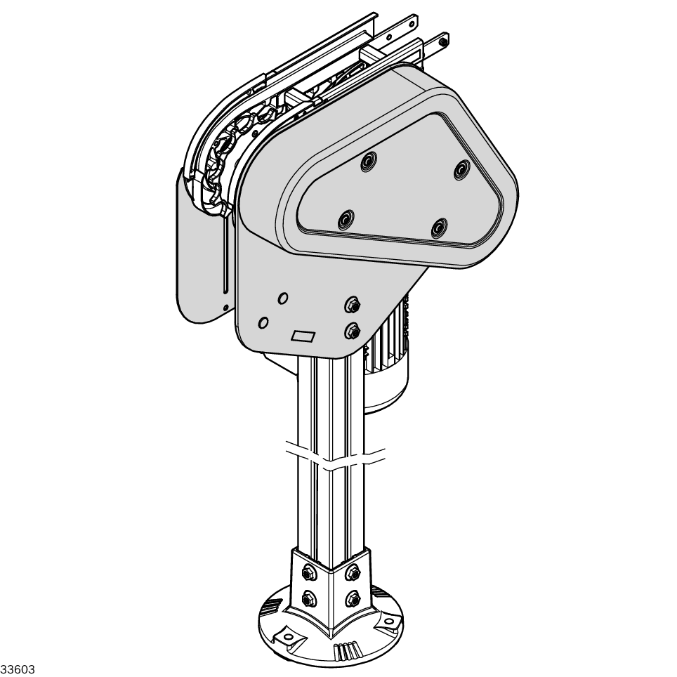 Kit de transmission VFplus. Kit de transmission VF. plus. Montage du kit d'entraînement (moteur, coupleur, bride) possible à droite/à gauche. Roulement à billes en acier inoxydable (1.4301), avec joint des deux côtés et garnissage de graisse conforme aux normes de la FDA. Très silencieux grâce à la transmission par courroie dentée