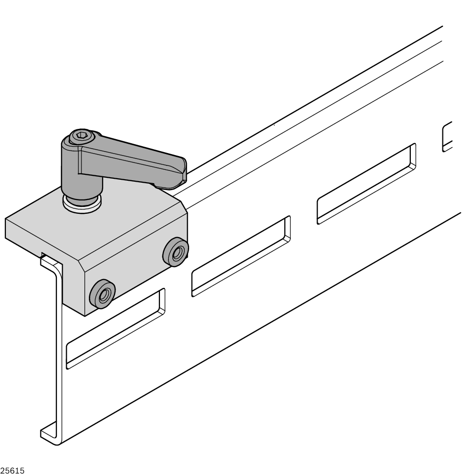 Dispositif de perçage VFplus. Dispositif de perçage VFplus. Le dispositif de perçage peut être mis en butée à droite ou à gauche et sert au positionnement exact de l'alésage de sécurisation du rail de glissement, tant sur le profilé de section que sur le profilé de support.