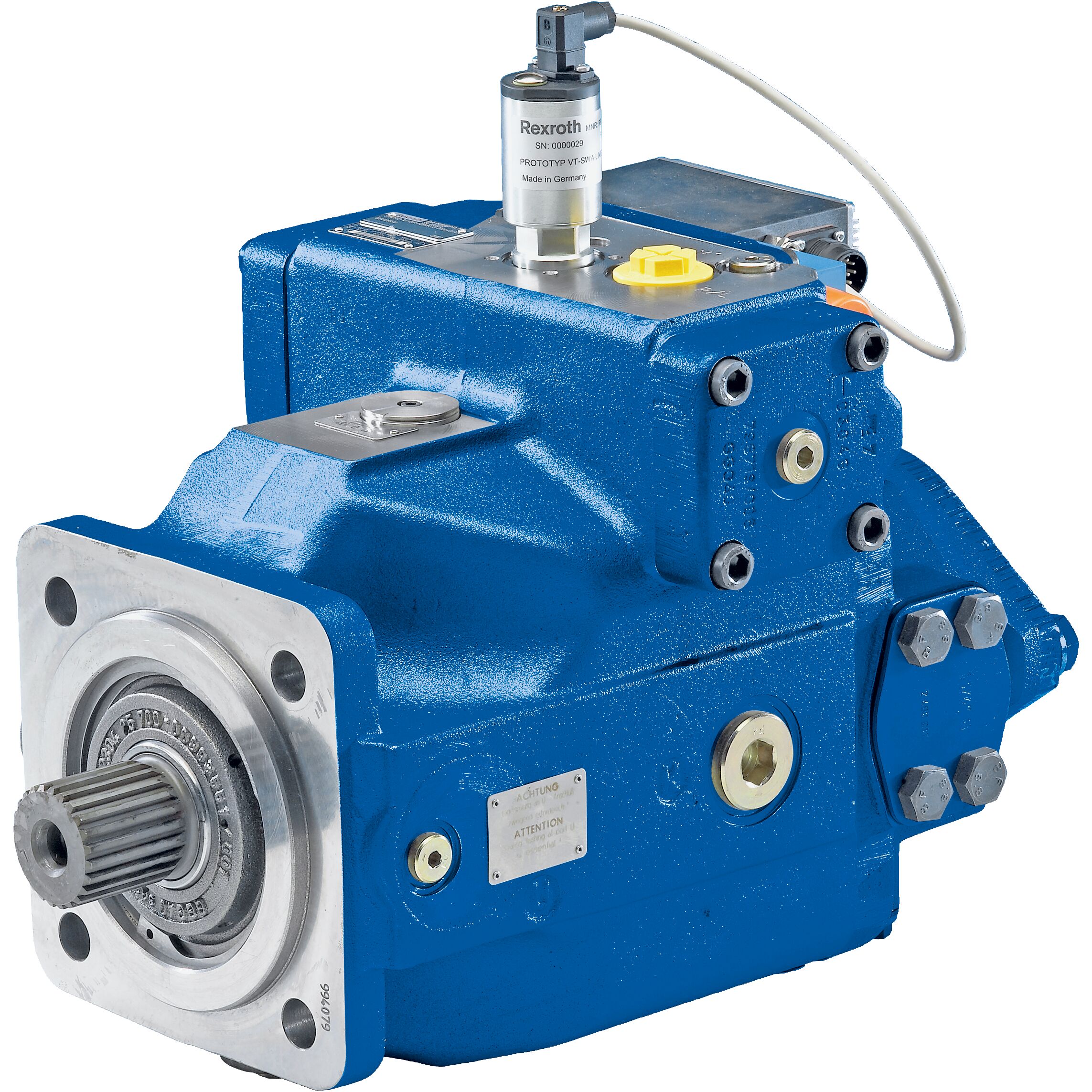 Pompe A4VSO avec OBE analogique. Système de pompes, pression de service maximale 350 bar, calibre 71, fonctionnement: Angle d’inclinaison, régulation de la pression, maître/esclave. Série 1X. 250 cm³. Pression nominale 350 bar. Communication: analogique. Autosuffisant